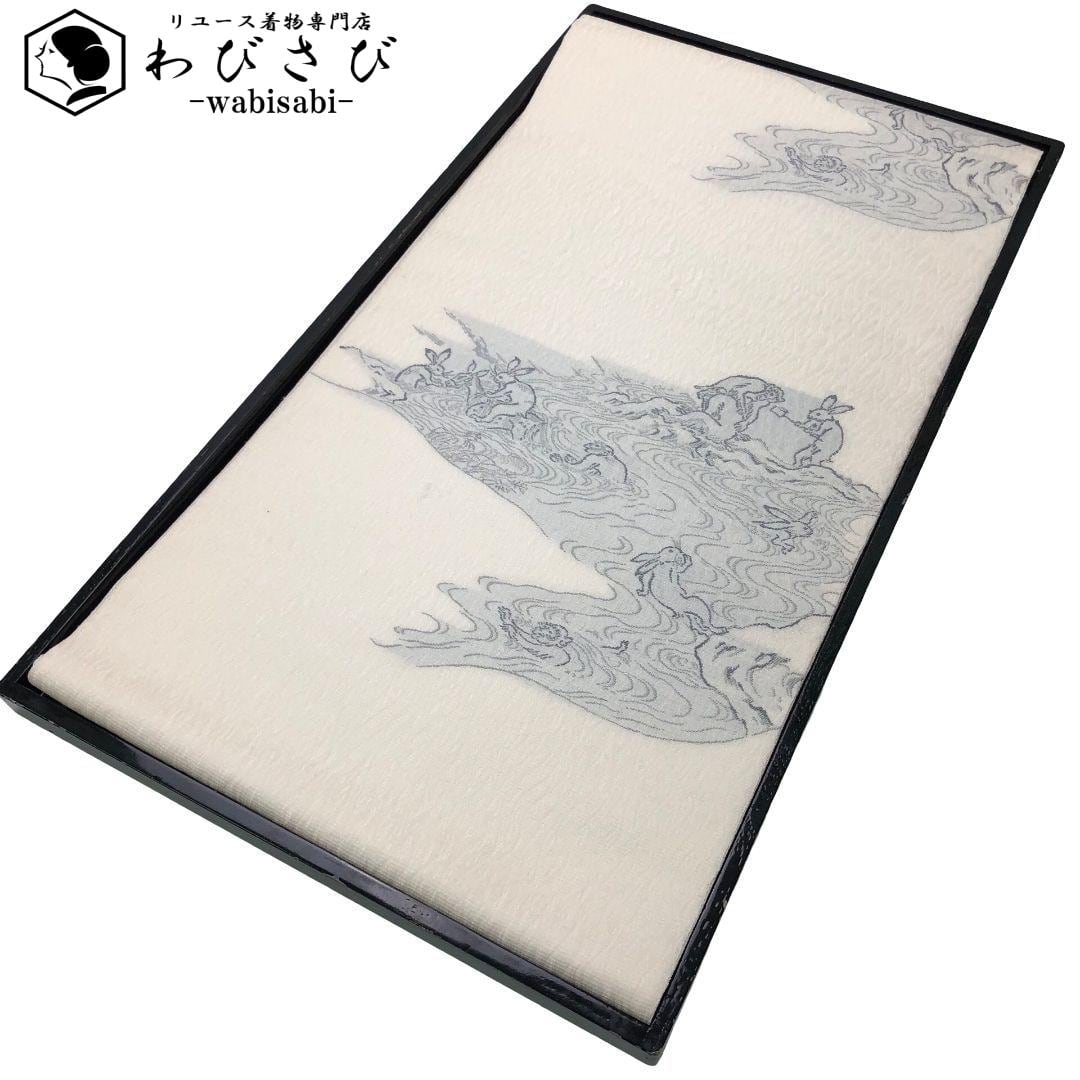 袋帯 鳥獣戯画 織模様 乳白色 O-5913 着物 きもの kimono 和服 和装 中古 リサイクル着物 【送料無料】