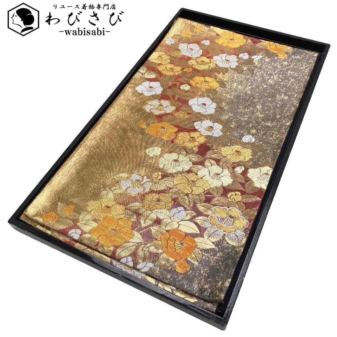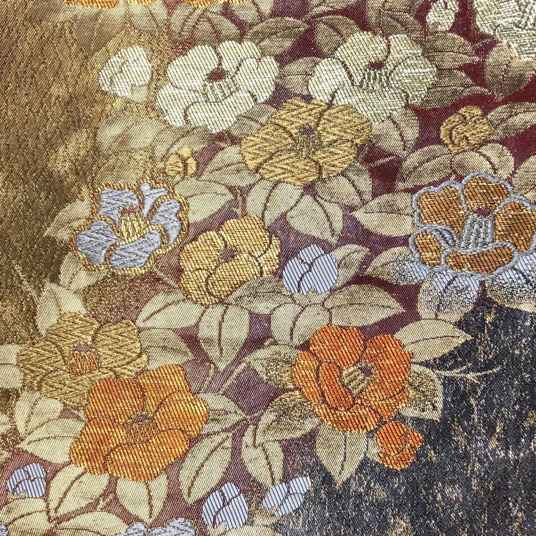 袋帯 椿の花模様 金糸 振袖 O-5878 着物 きもの kimono 和服 和装 中古 リサイクル着物 【送料無料】