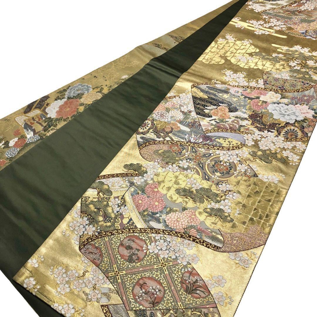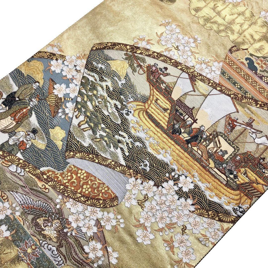 袋帯 三代物語 南蛮渡来 船 花模様 金糸 金色 O-5875 着物 きもの kimono 和服 和装 中古 リサイクル着物 【送料無料】