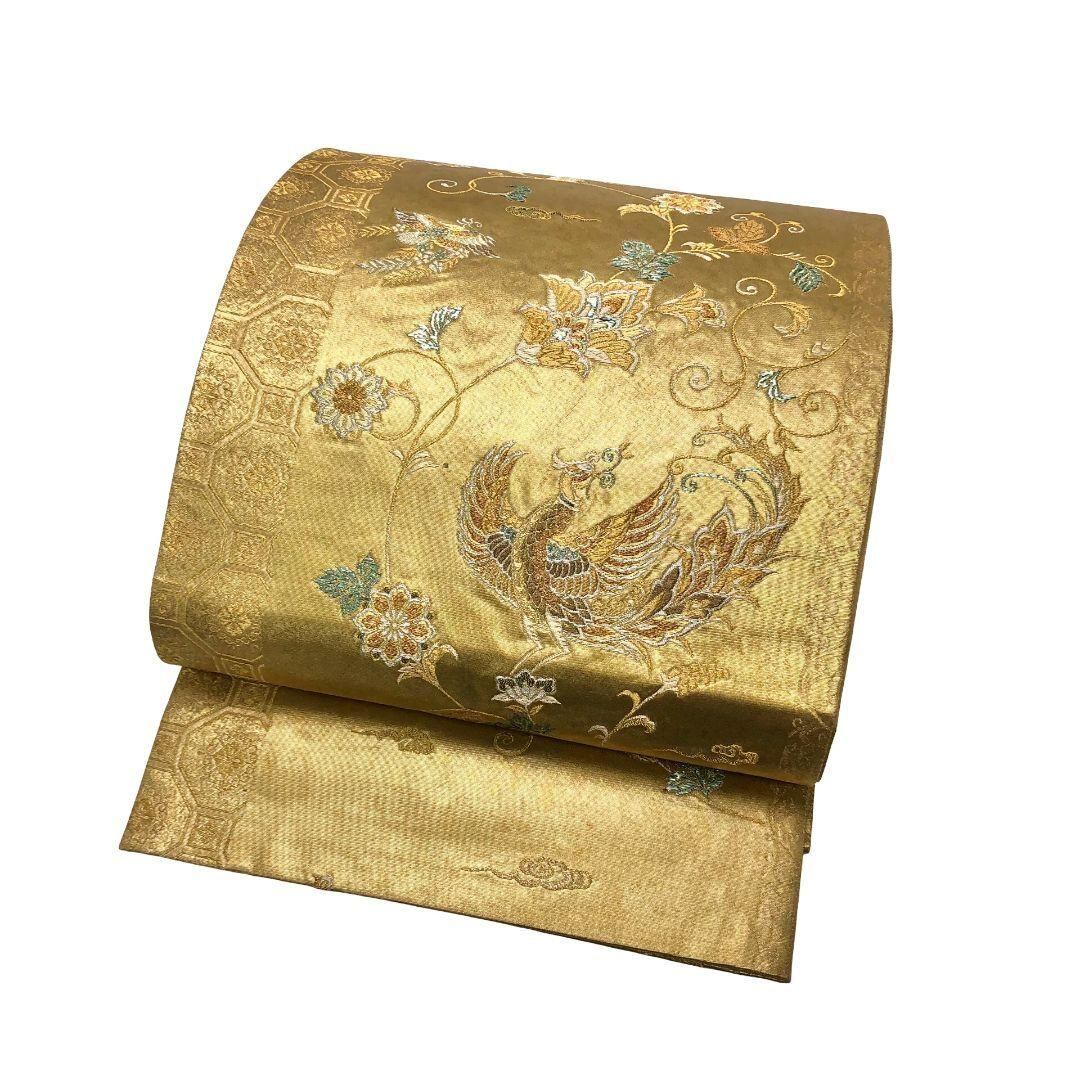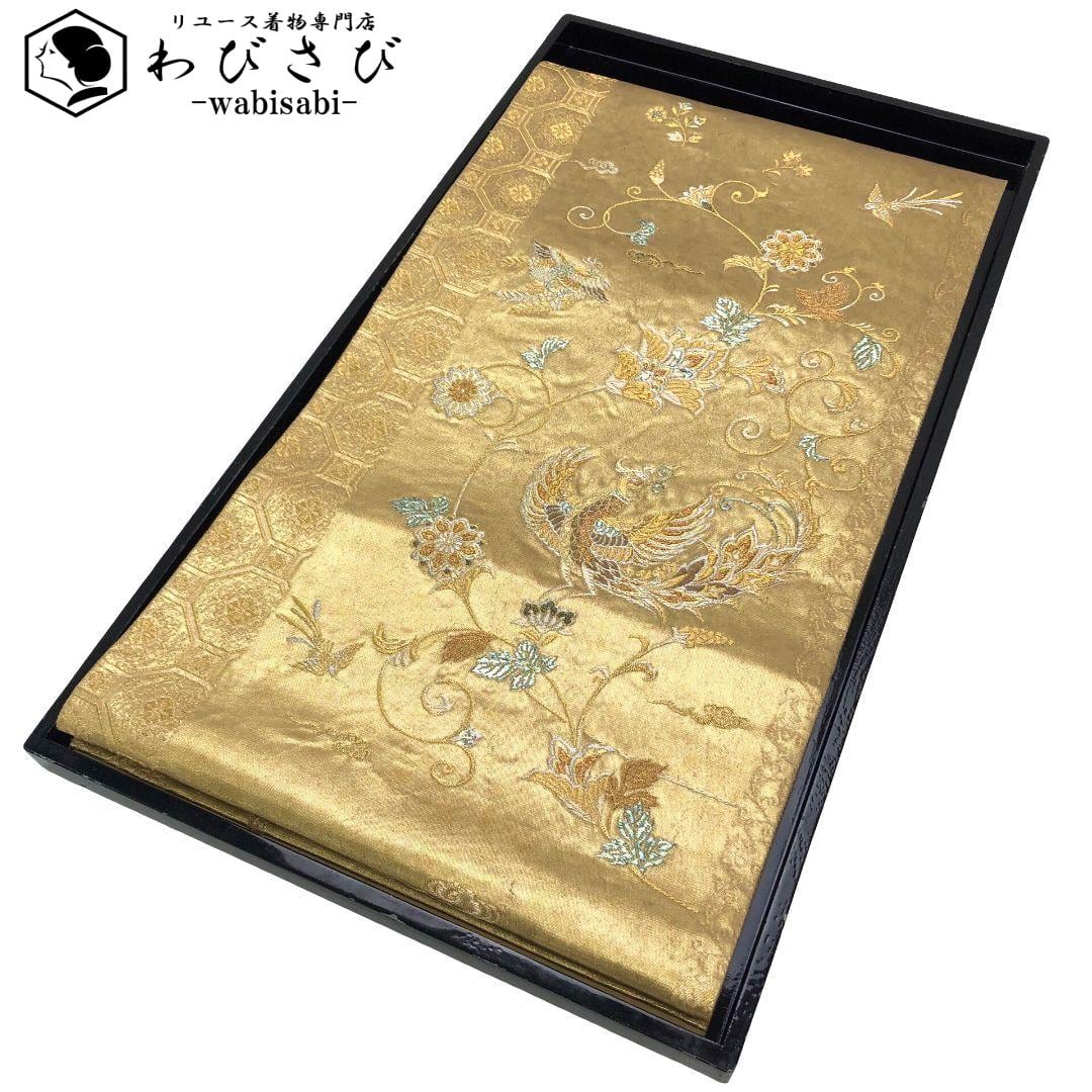 袋帯 青銅箔 鳳凰 花唐草模様 金糸 金色 O-5877 着物 きもの kimono 和服 和装 中古 リサイクル着物 【送料無料】