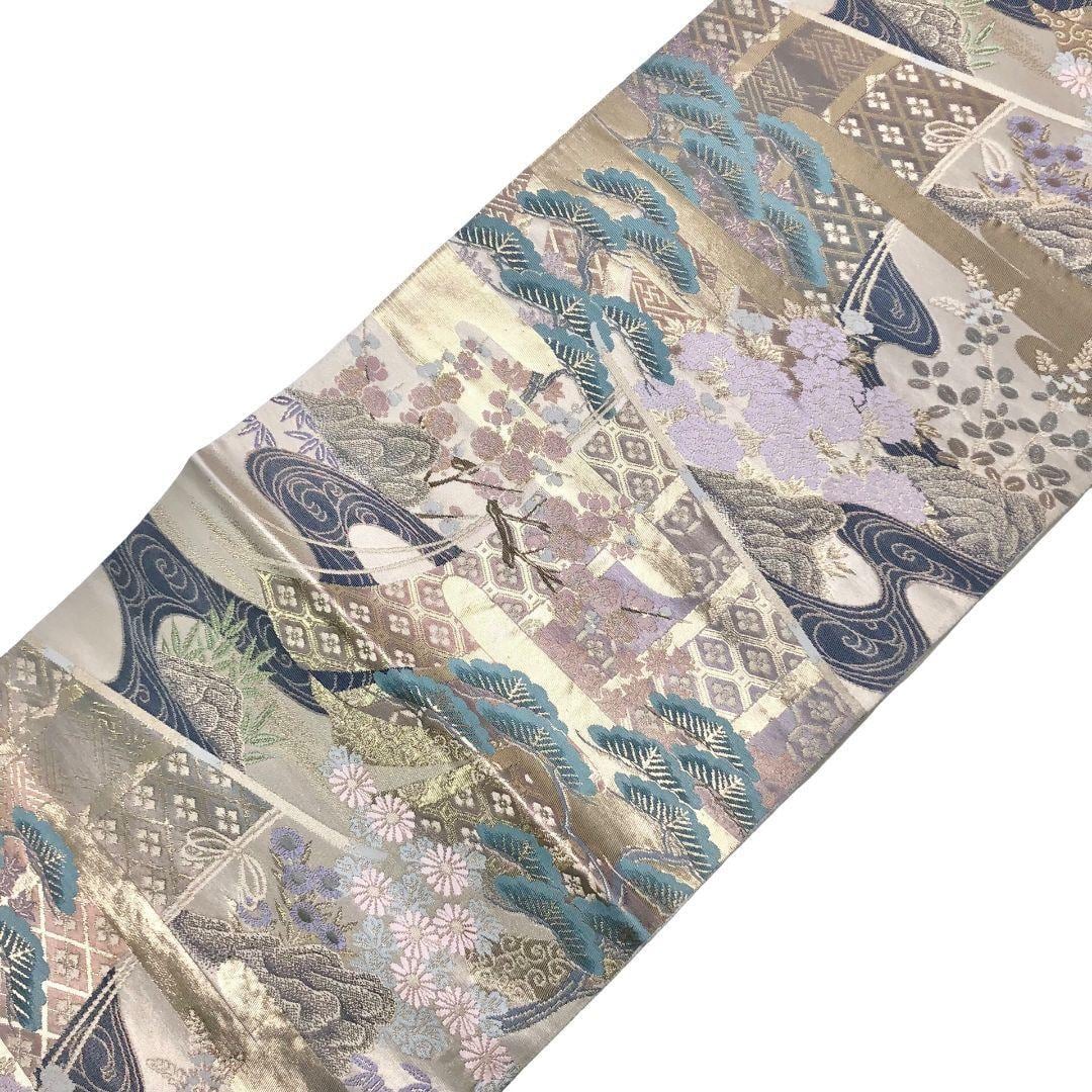 袋帯 四季の花模様 流水 松 金糸 O-5880 着物 きもの kimono 和服 和装 中古 リサイクル着物 【送料無料】