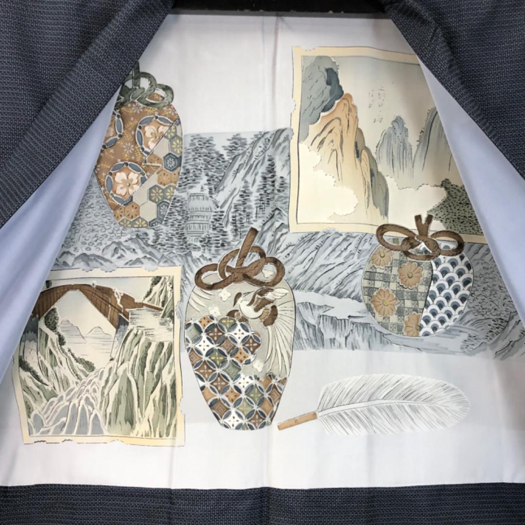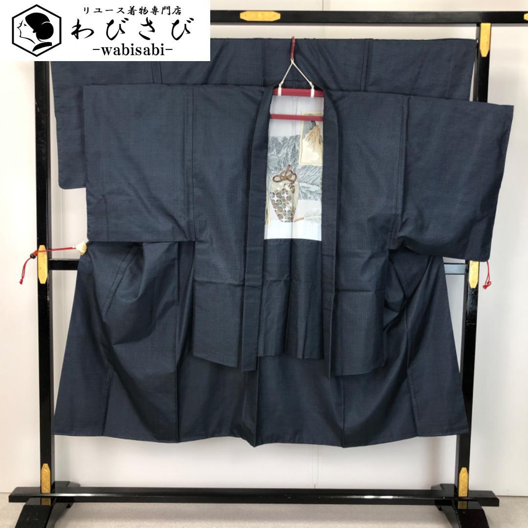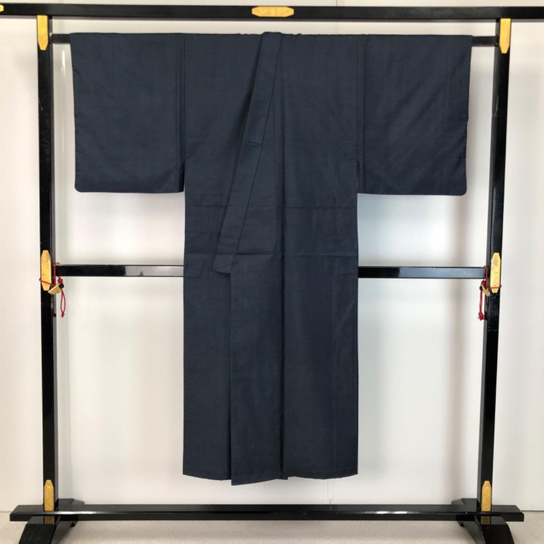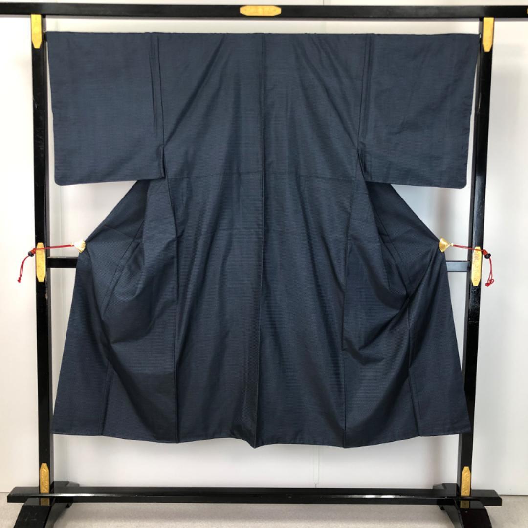 紺鉄色のお色味に100亀甲の柄裄がデザインされた素敵なお品でございます。