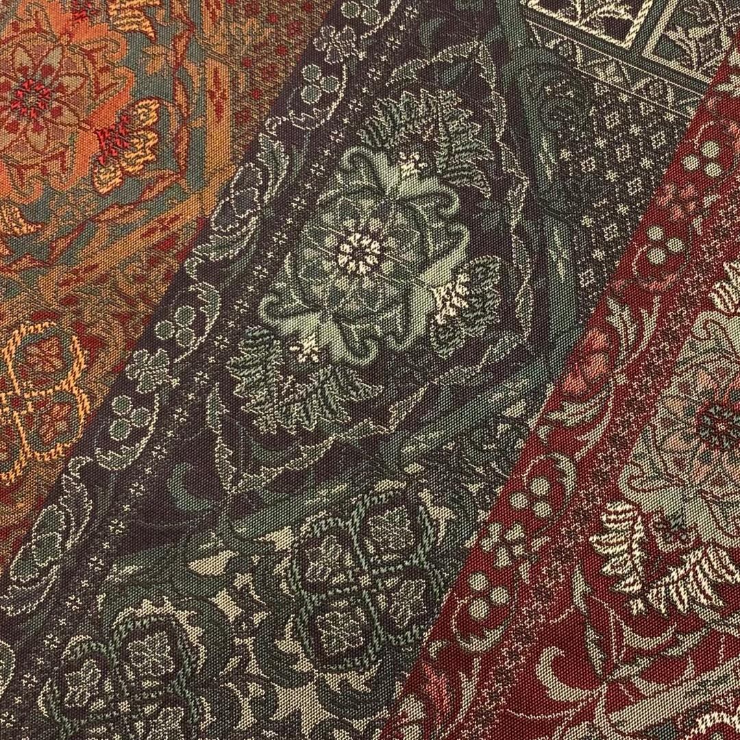 落ち着きある品のある色彩、縦縞に華柄模様がデザインされた素敵なお品でございます。