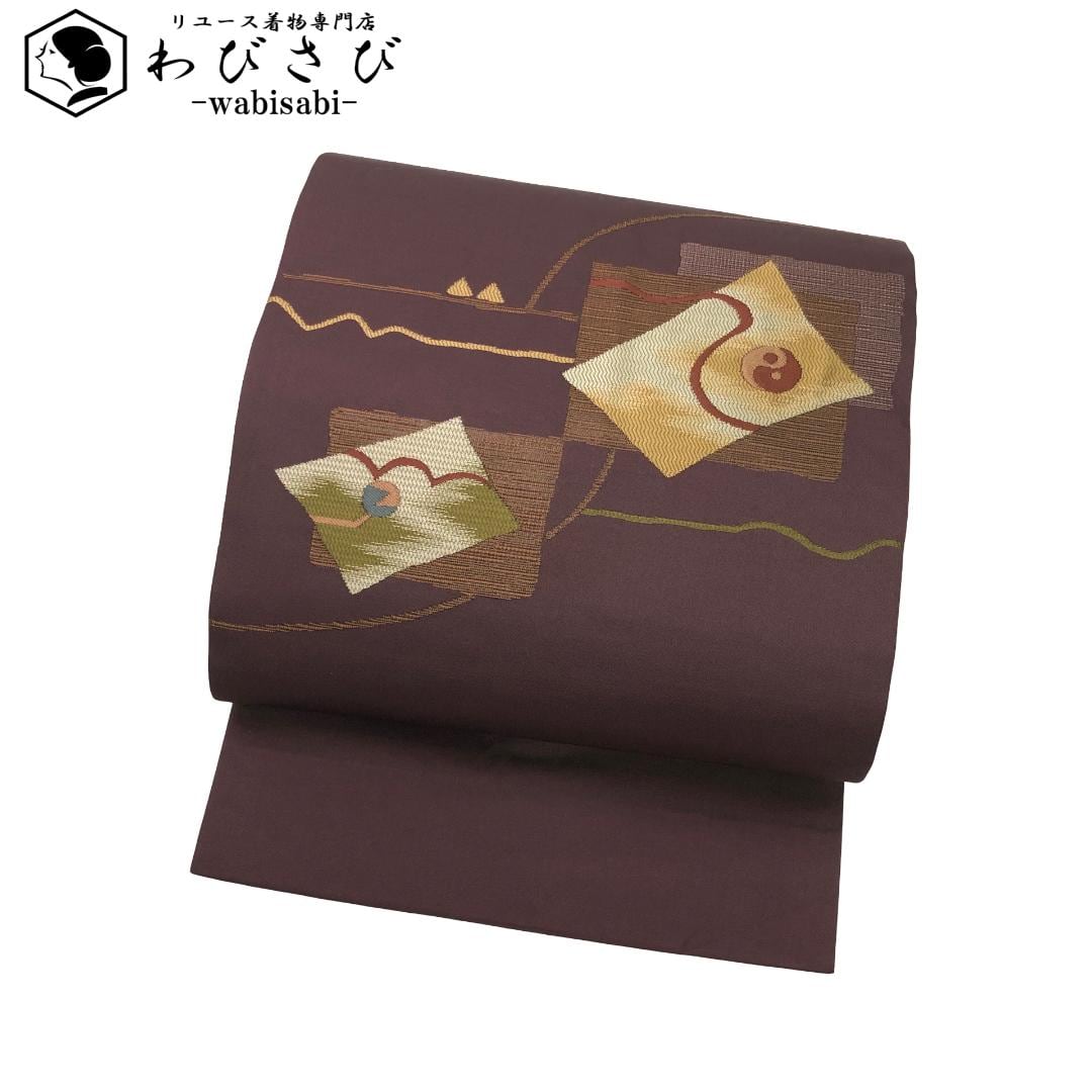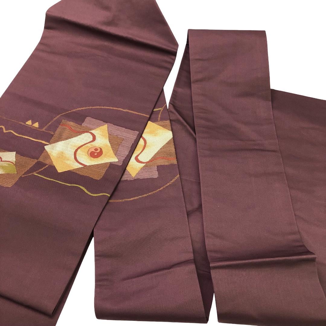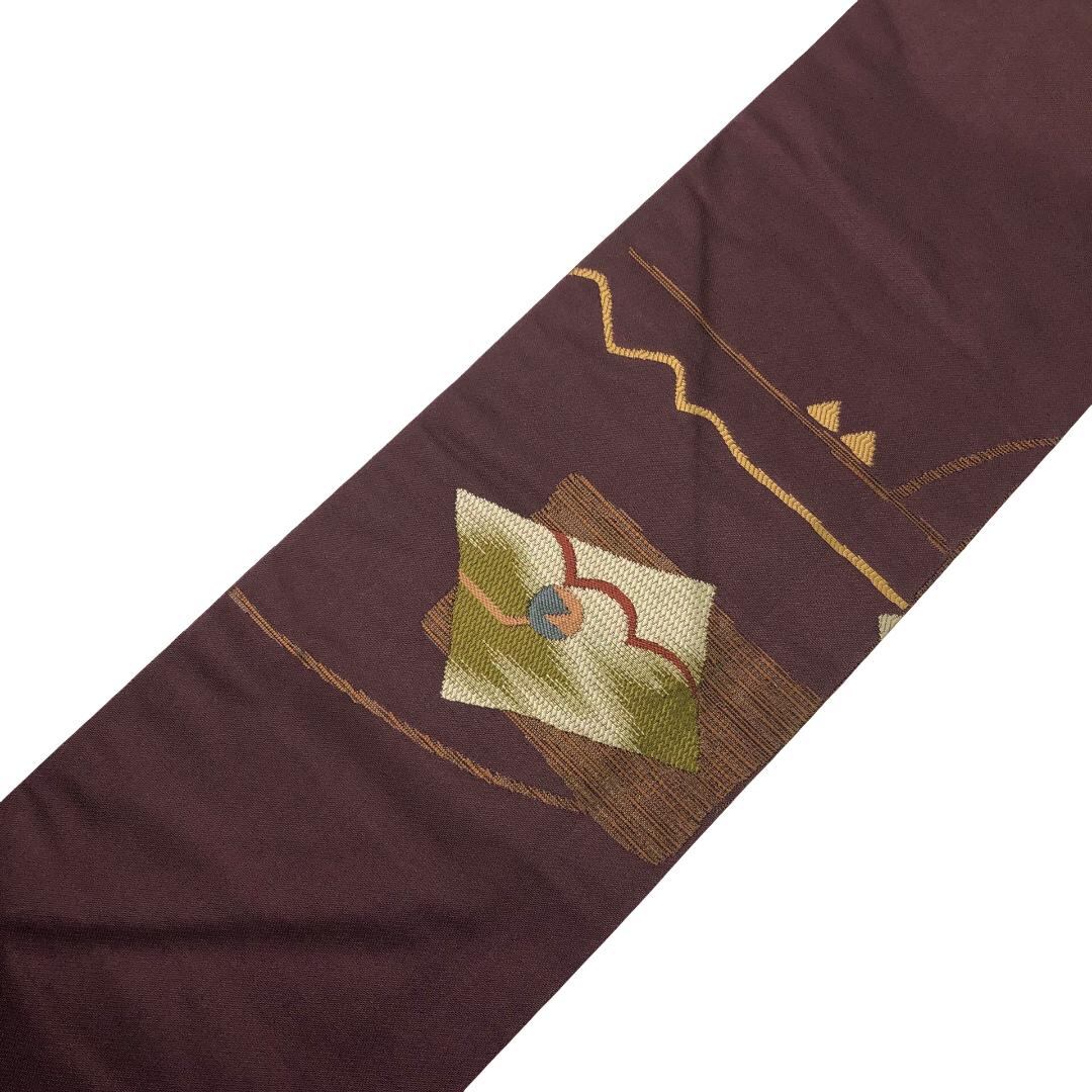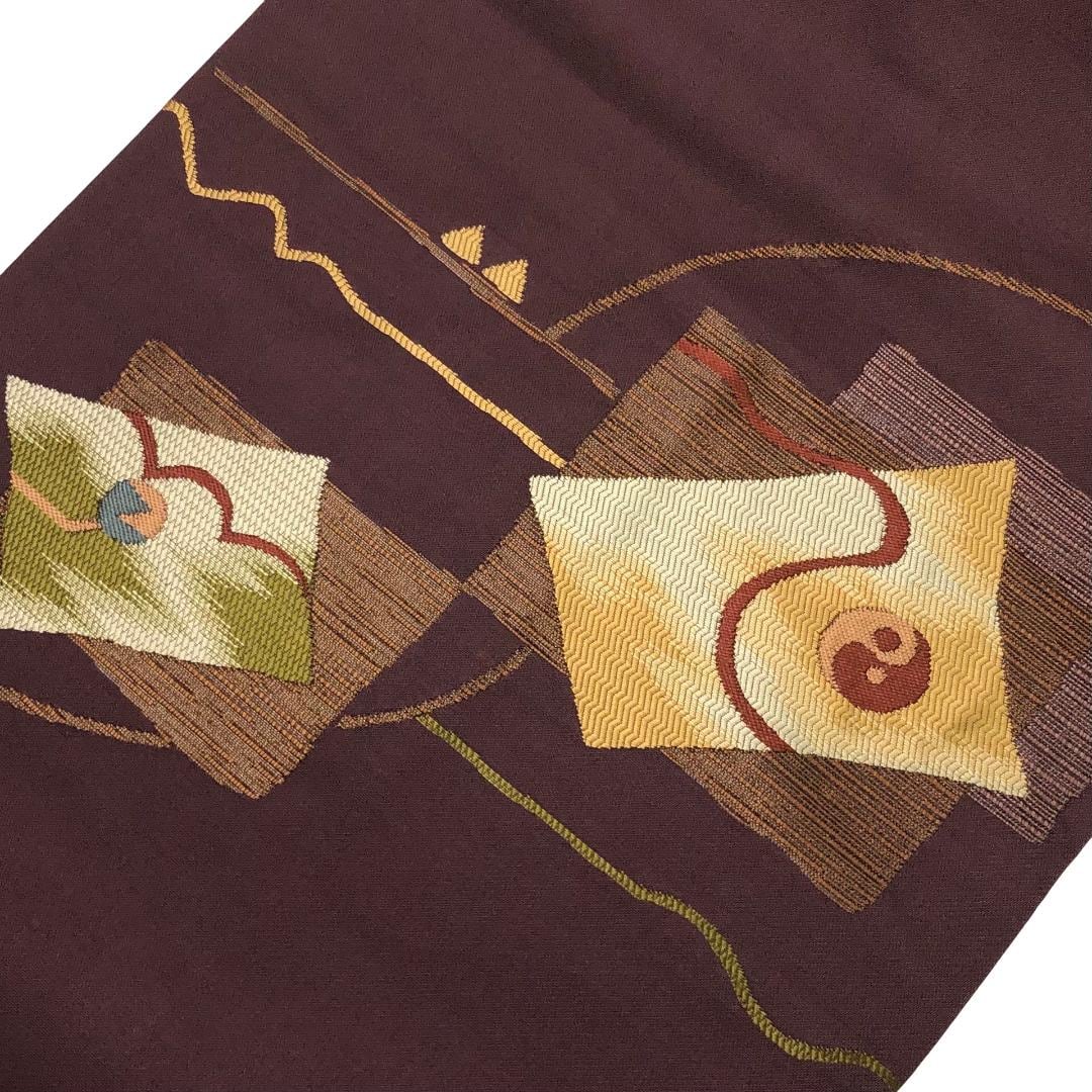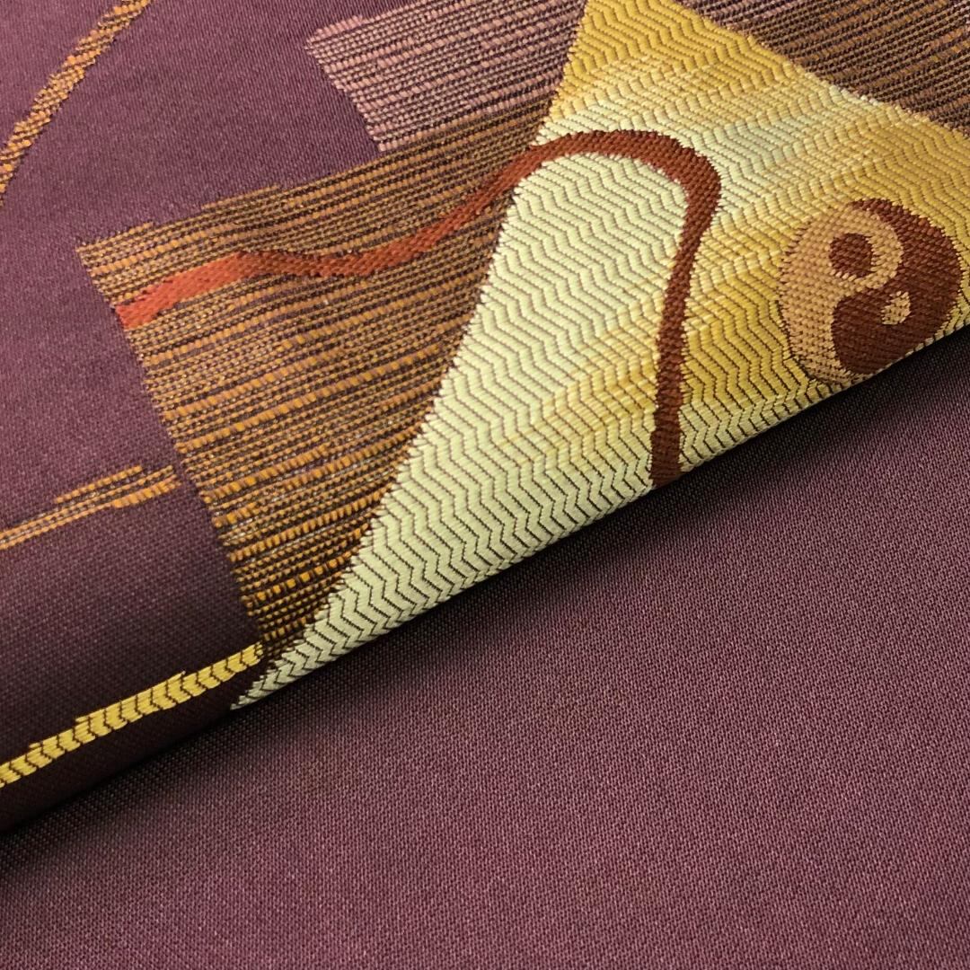 紫鳶色のお色味、四角に抽象模様がデザインされた素敵なお品でございます。