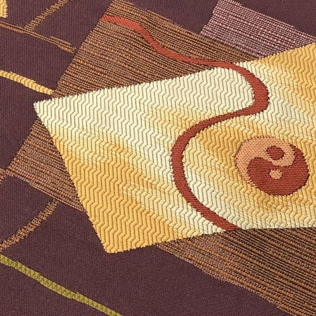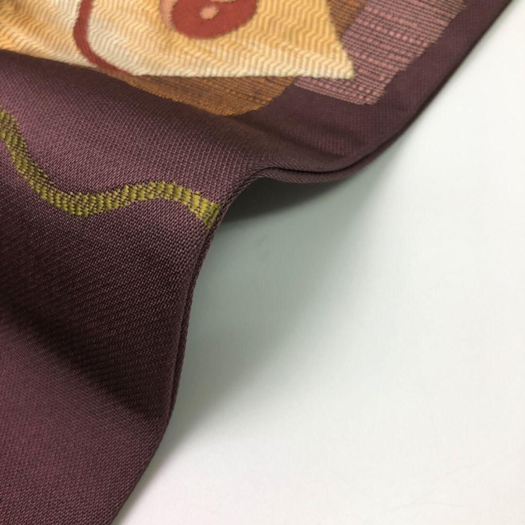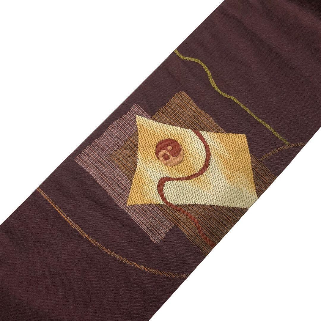 名古屋帯 四角に抽象模様 紫鳶色 O-5814 着物 きもの kimono 和服 和装 中古 リサイクル着物 【送料無料】