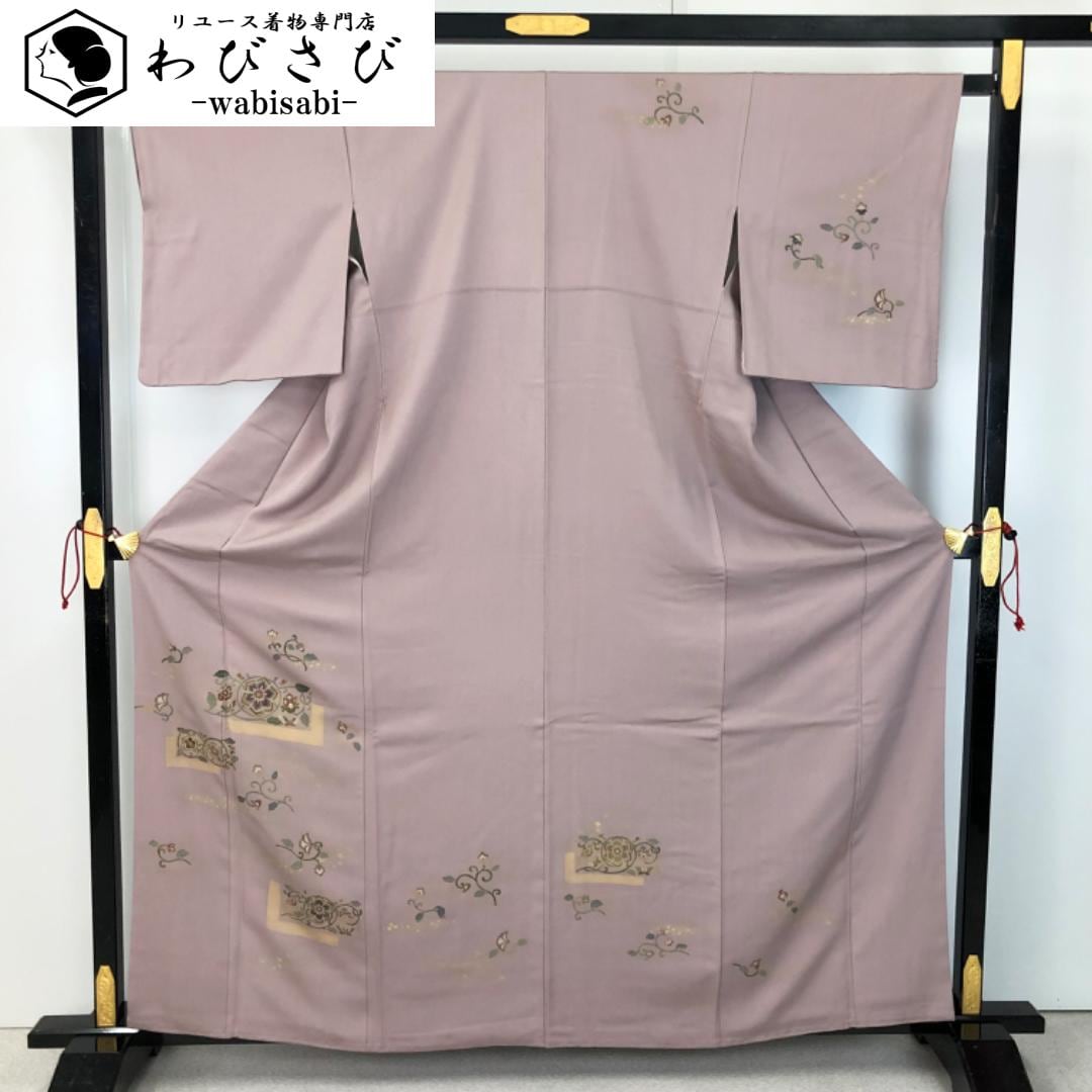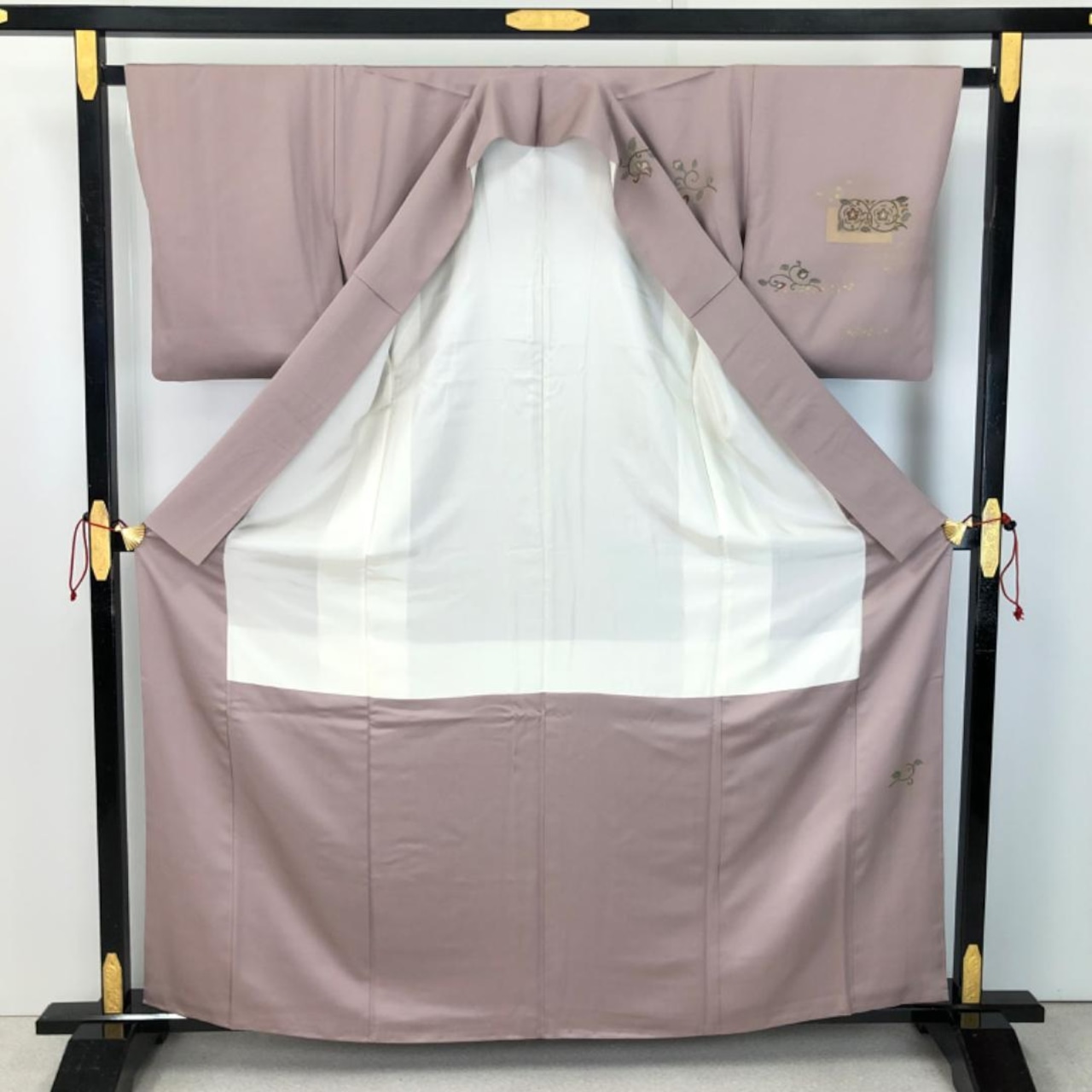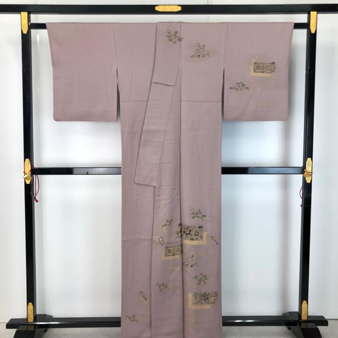 梅鼠色のお色味に花唐草模様がデザインされた素敵なお品でございます。