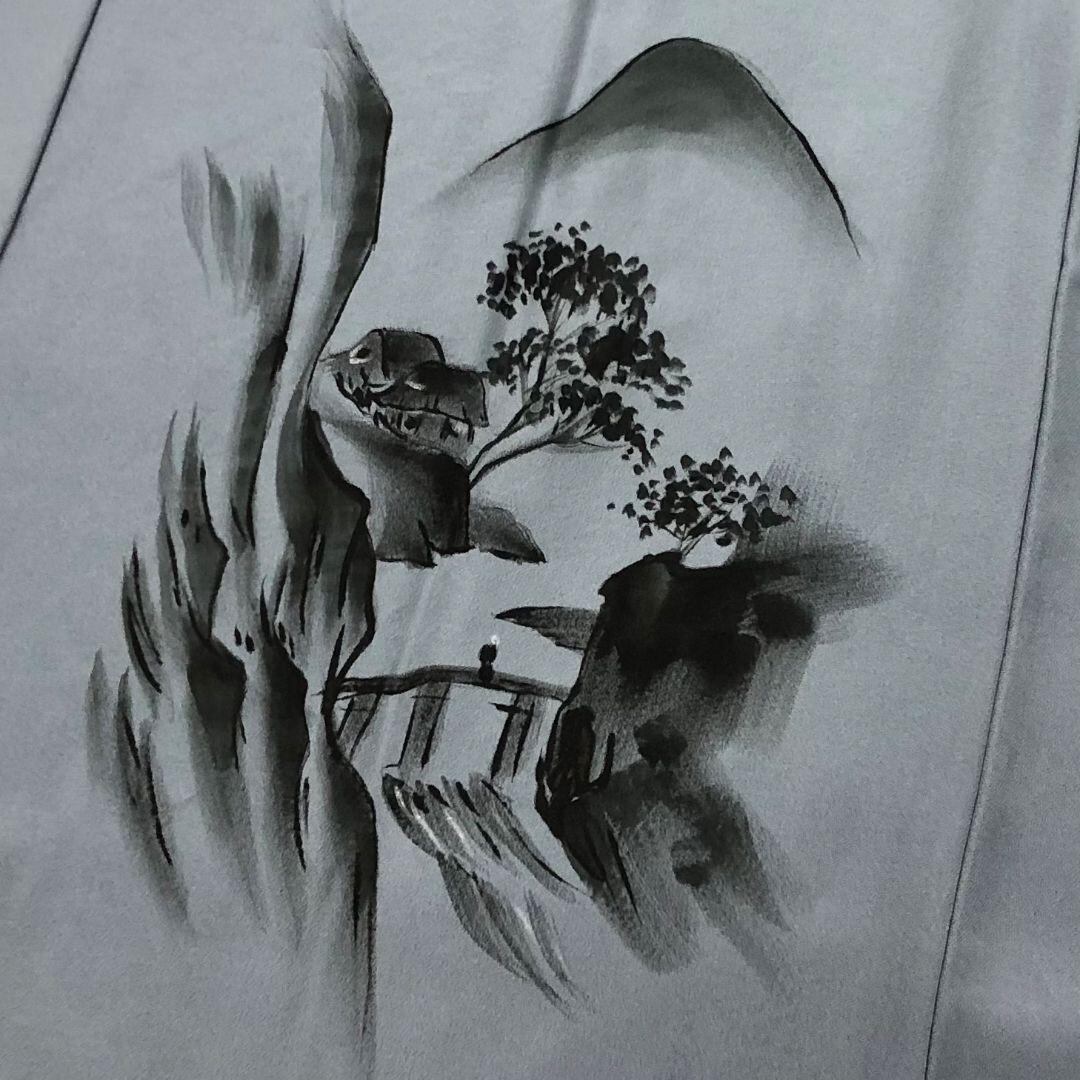 灰青色ベースのお色味に風景模様がデザインされた素敵なお品でございます。