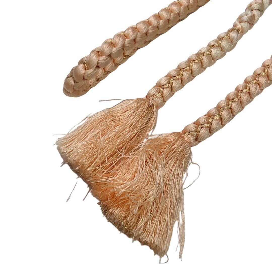 和装小物 帯締め 正絹 丸組紐 組紐 薄柿色 金糸 C-6560 着物 きもの kimono 和服 和装 中古 リサイクル着物 【送料無料】