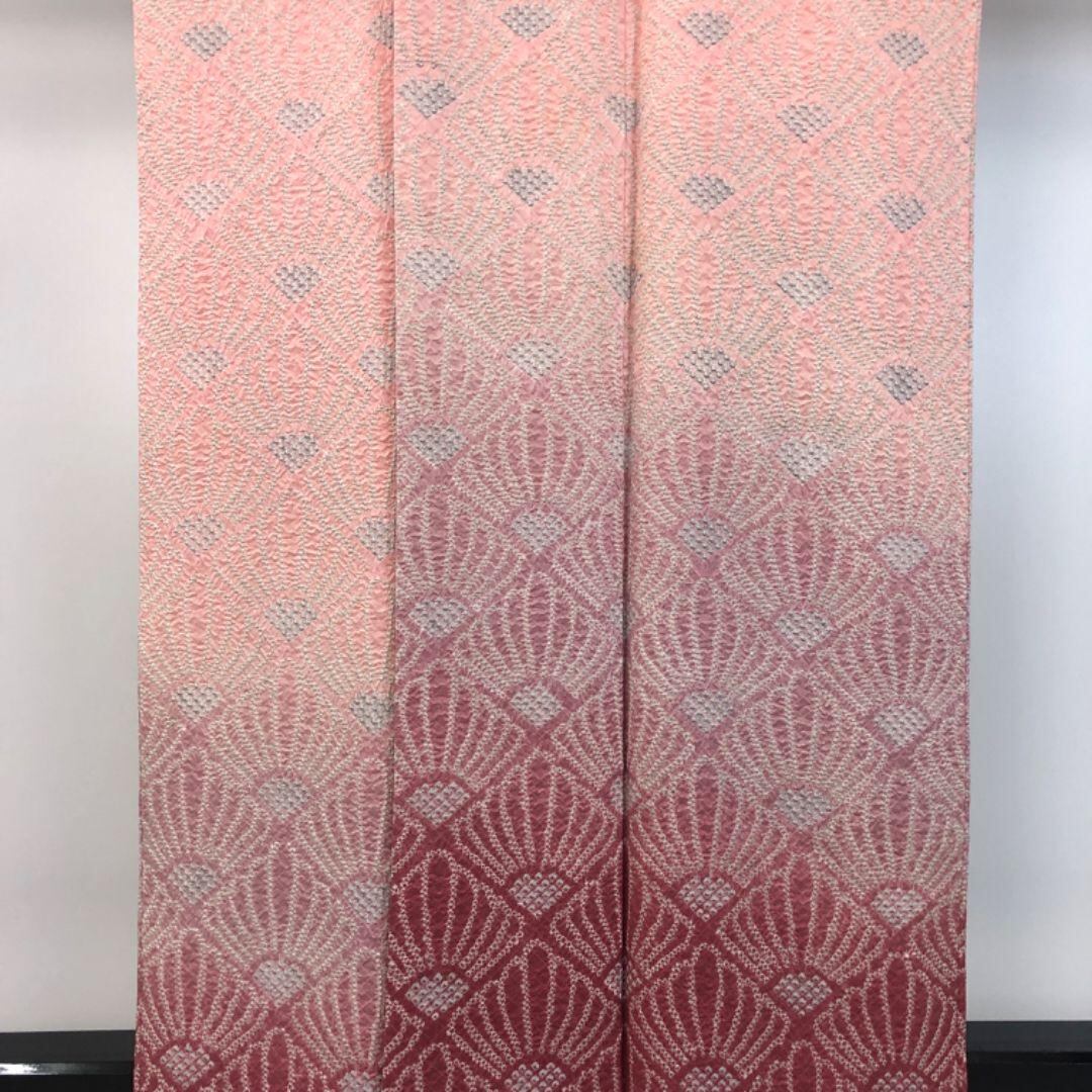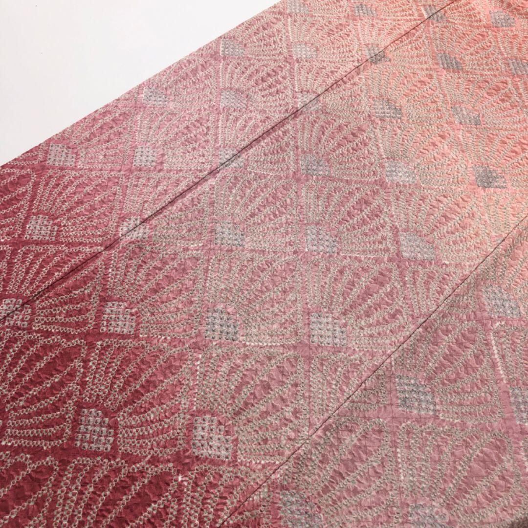 薄紅梅色のお色味に暈し、菱形模様がデザインされた雰囲気の良い素敵なお品でございます。