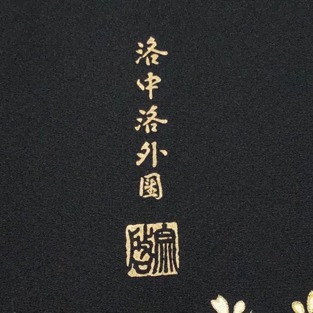 黒留袖 作家物 洛中洛外図 地紙に花模様 桜 女性と男性 金彩 K-5334 着物 きもの kimono 和服 和装 中古 リサイクル着物 【送料無料】