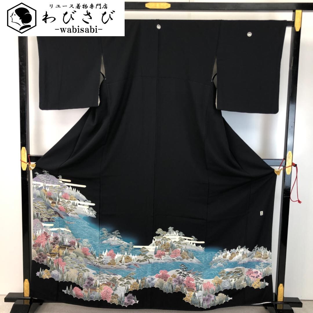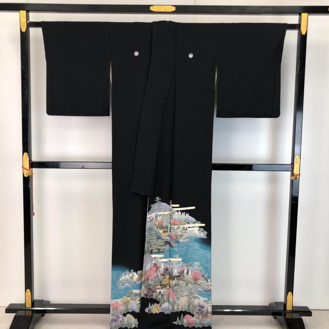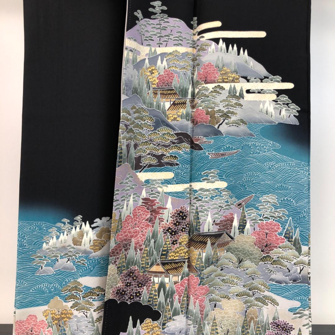 波に松などの風景模様の柄裄がデザインされた雰囲気の良い素敵なお品でございます。