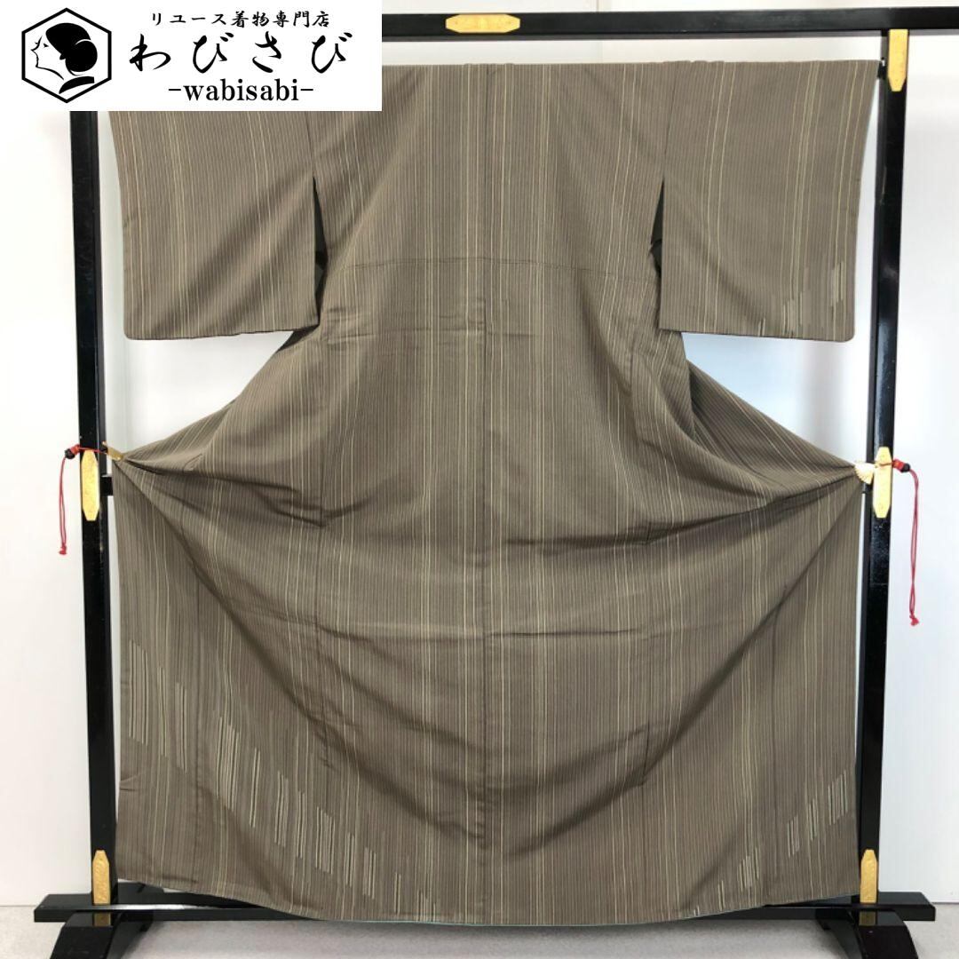 付下げ 縦縞織模様 生壁鼠色 トールサイズ K-5522 着物 きもの kimono 和服 和装 中古 リサイクル着物 【送料無料】