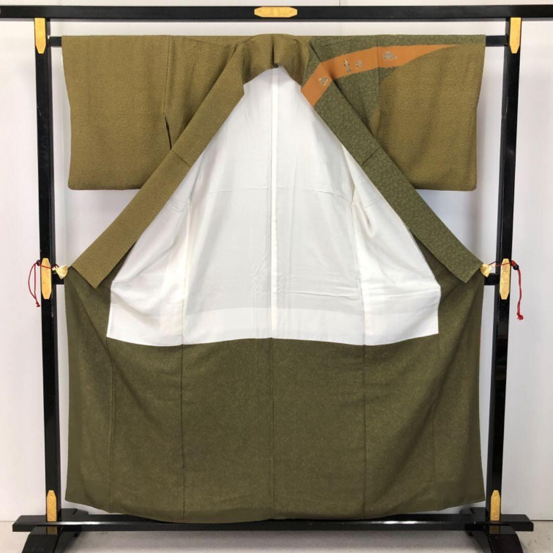 訪問着 伝統工芸士 石塚幸生 こけし 駒 花亀甲 縮緬 樹皮色 K-5594 着物 きもの kimono 和服 和装 中古 リサイクル着物 【送料無料】