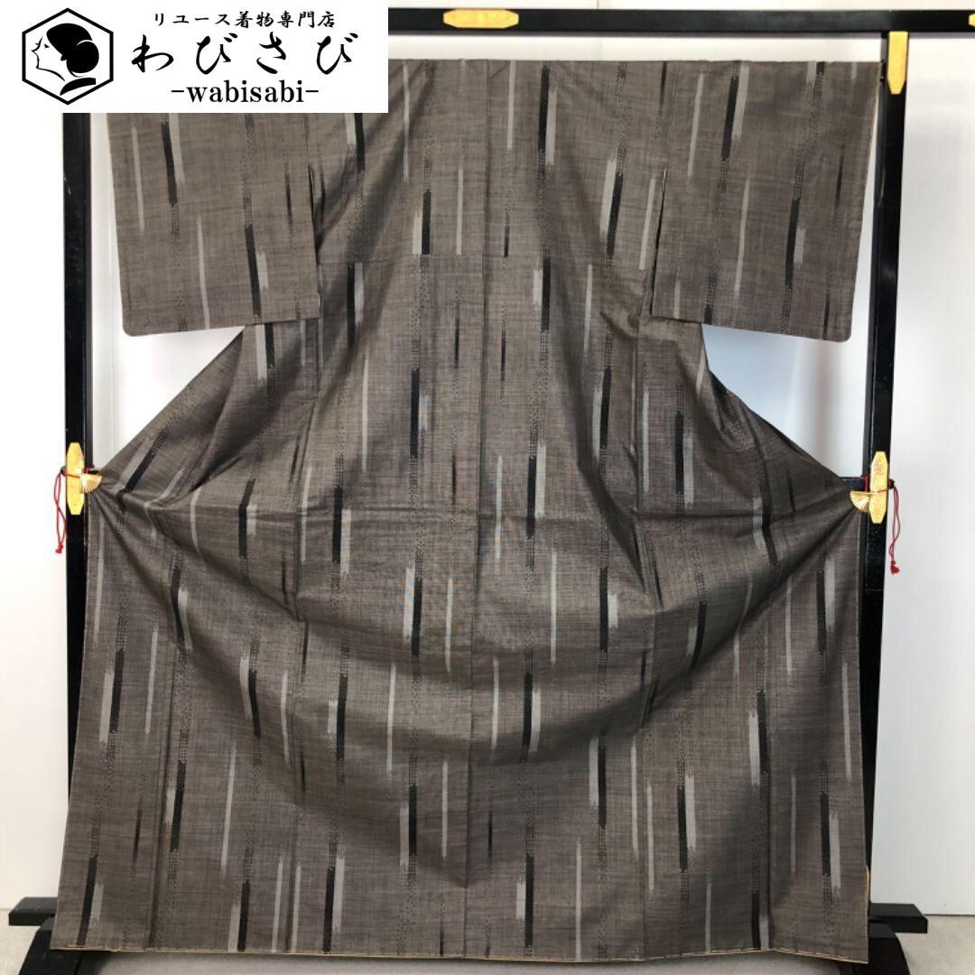 本場大島紬 高山好和 カタス9マルキ 証紙付 縦線柄 トールサイズ K-5630 着物 きもの kimono 和服 和装 中古 リサイクル着物 【送料無料】