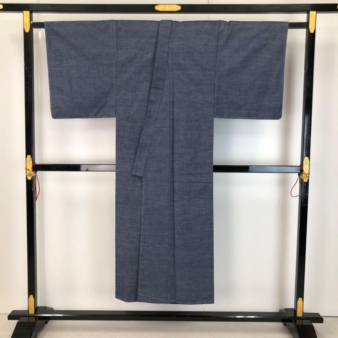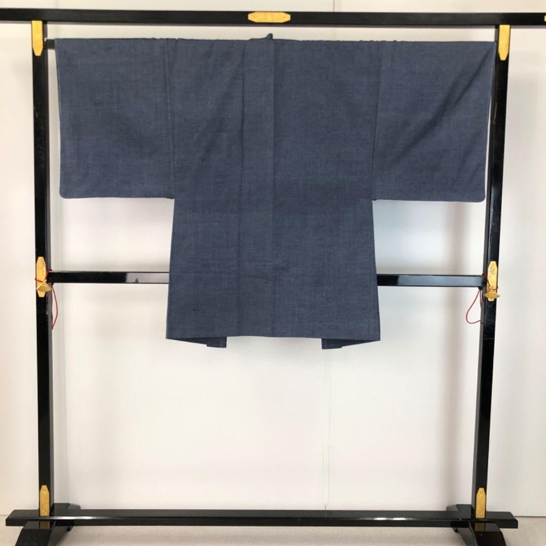 男着物 アンサンブル 紬 錫紵色 しつけ糸 M-1129 着物 きもの kimono 和服 和装 中古 リサイクル着物 【送料無料】