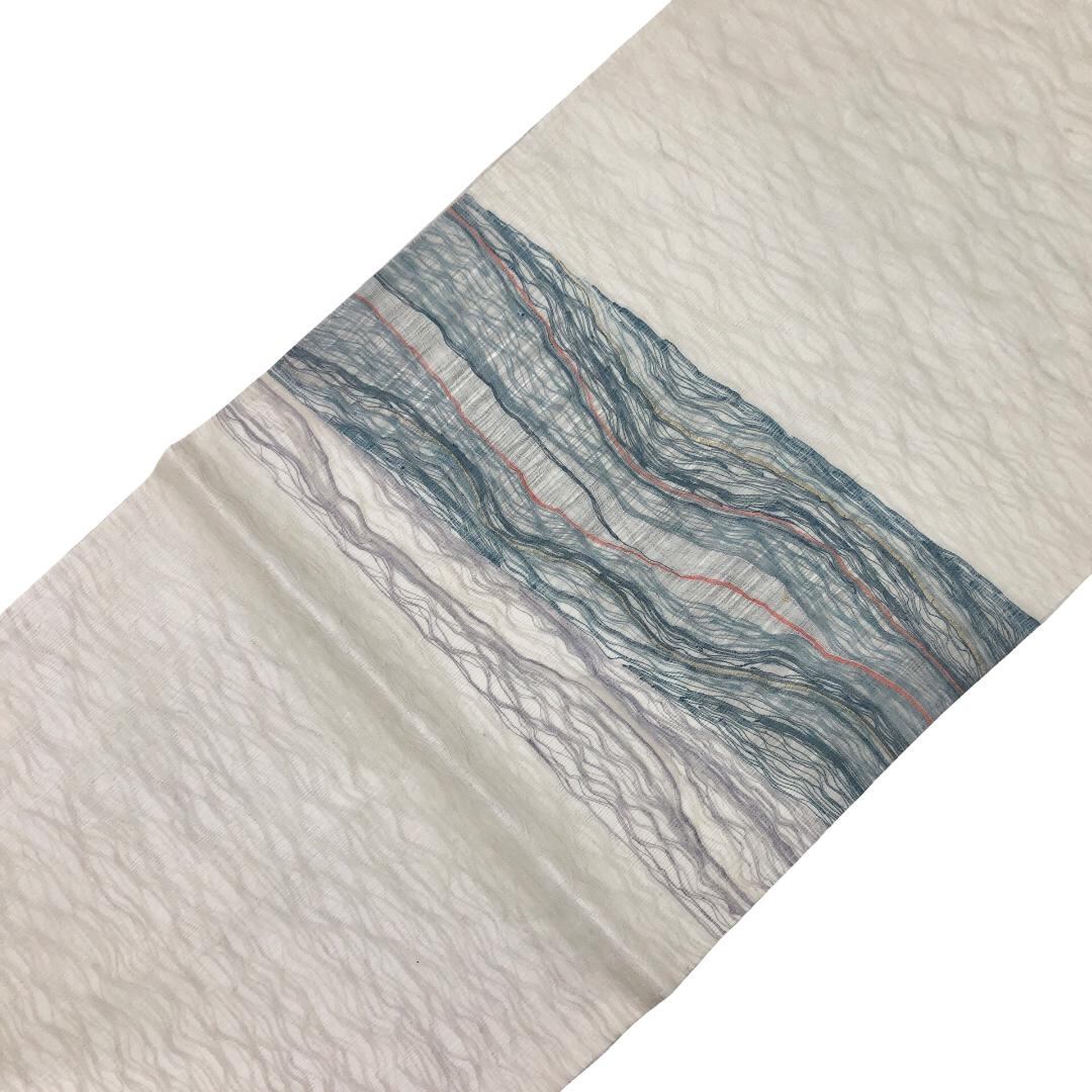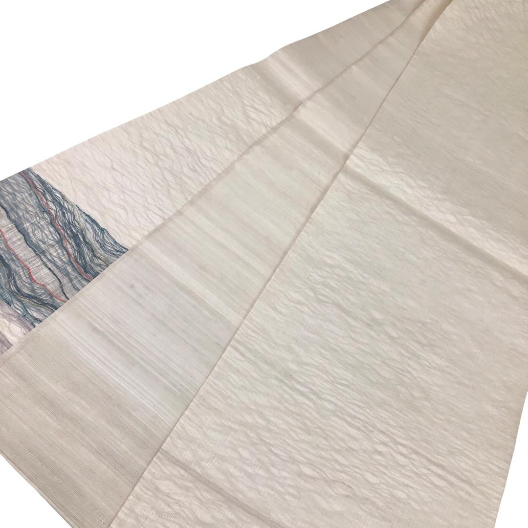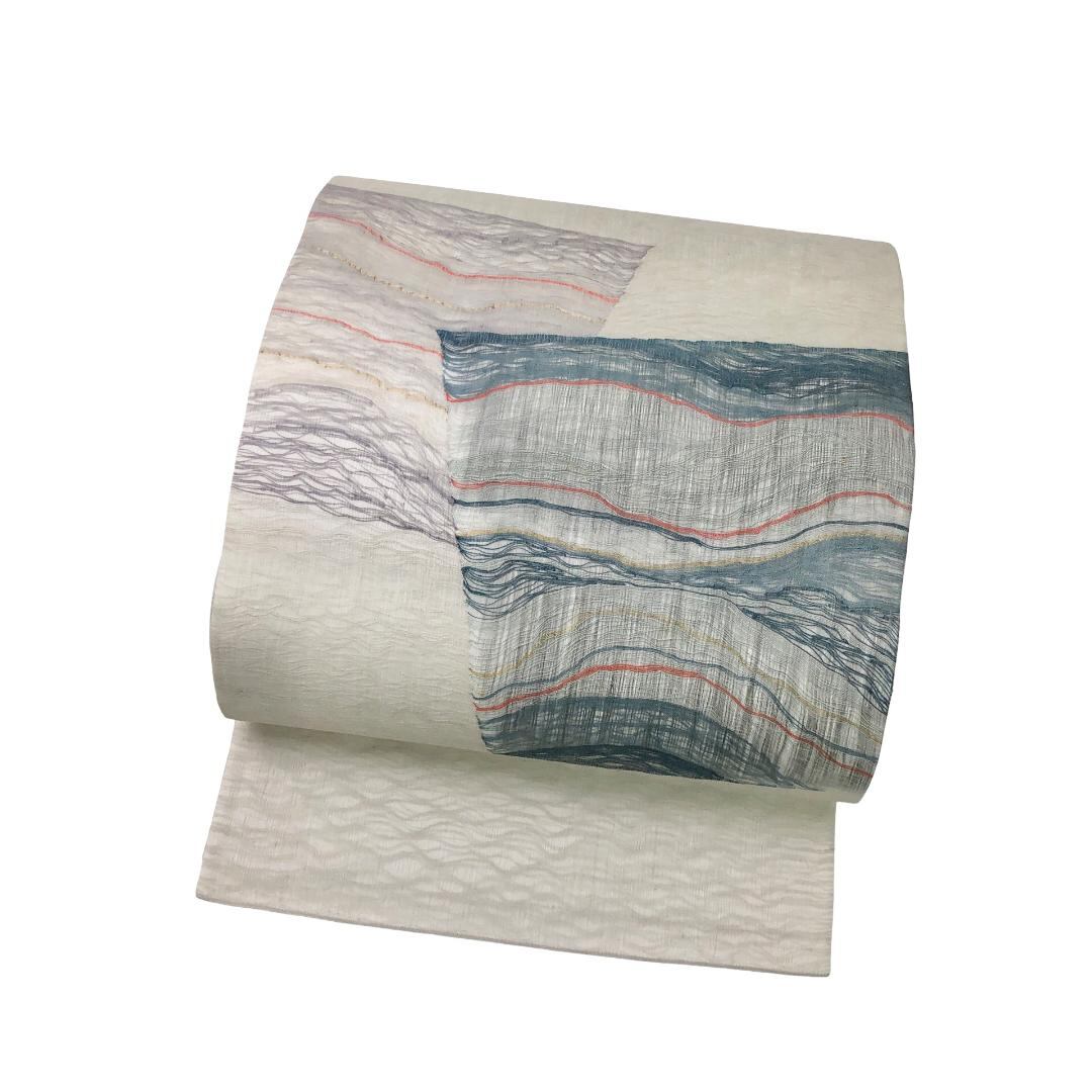 乳白色の上品なお色味に抽象織模様の透け感のある柄行がデザインされた素敵なお品でございます。