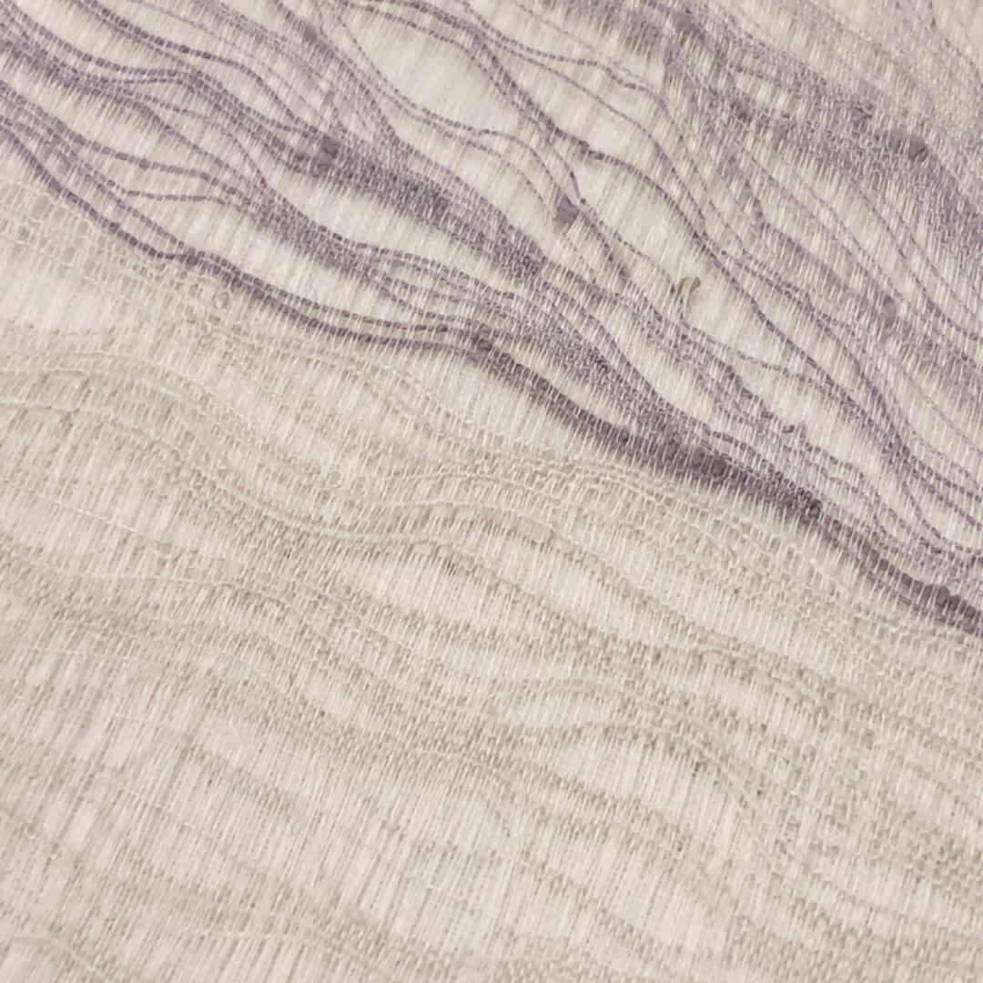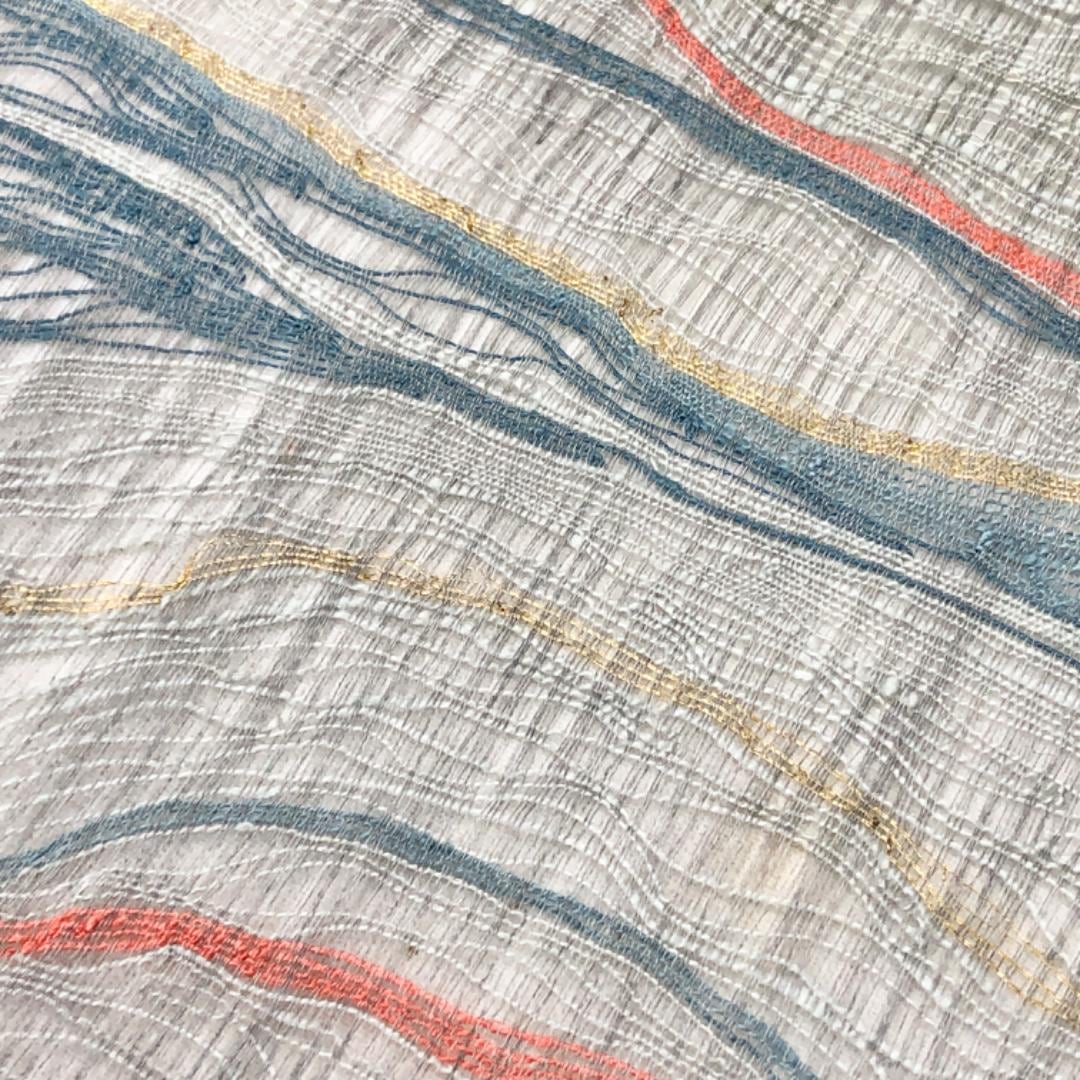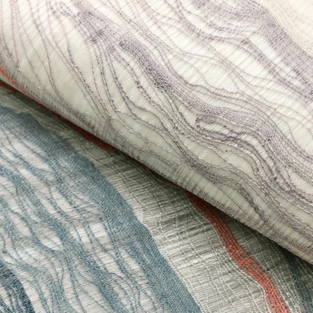 乳白色の上品なお色味に抽象織模様の透け感のある柄行がデザインされた素敵なお品でございます。