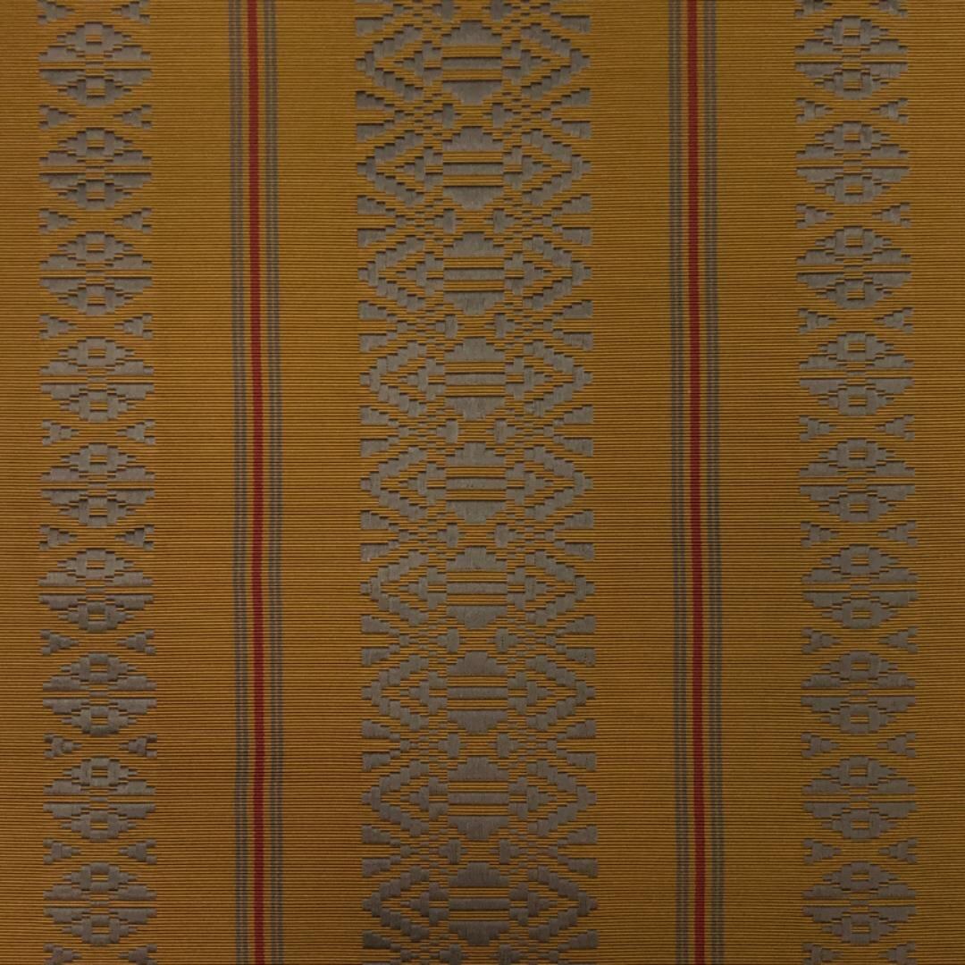 琥珀色のお色味に上品な献上柄がデザインされた気持ち良い絹鳴りのする素敵なお品でございます。