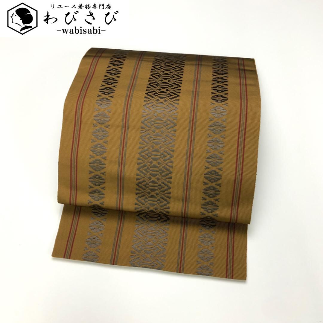 名古屋帯 本場筑前博多織 黒木織物 証紙付 献上柄 琥珀色 O-5496 着物 きもの kimono 和服 和装 中古 リサイクル着物 【送料無料】