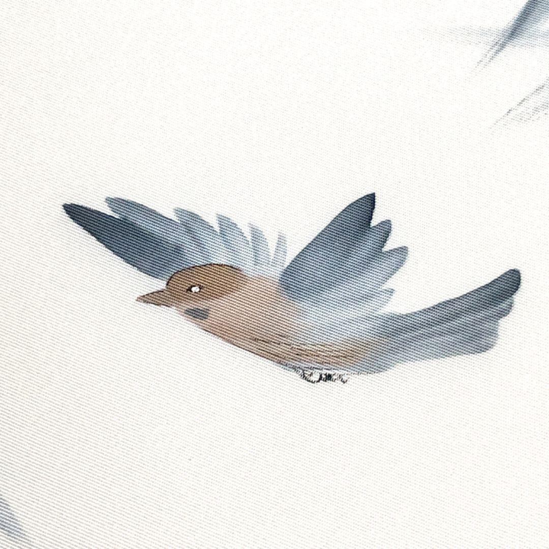 乳白色のお色味に手描きで鳥や竹、笹の葉がデザインされた塩瀬の素敵な柄裄のお品でございます。