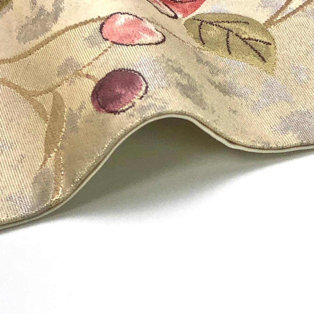 名古屋帯 可愛い椿の花模様 金銀糸 生成色 O-5505 着物 きもの kimono 和服 和装 中古 リサイクル着物 【送料無料】