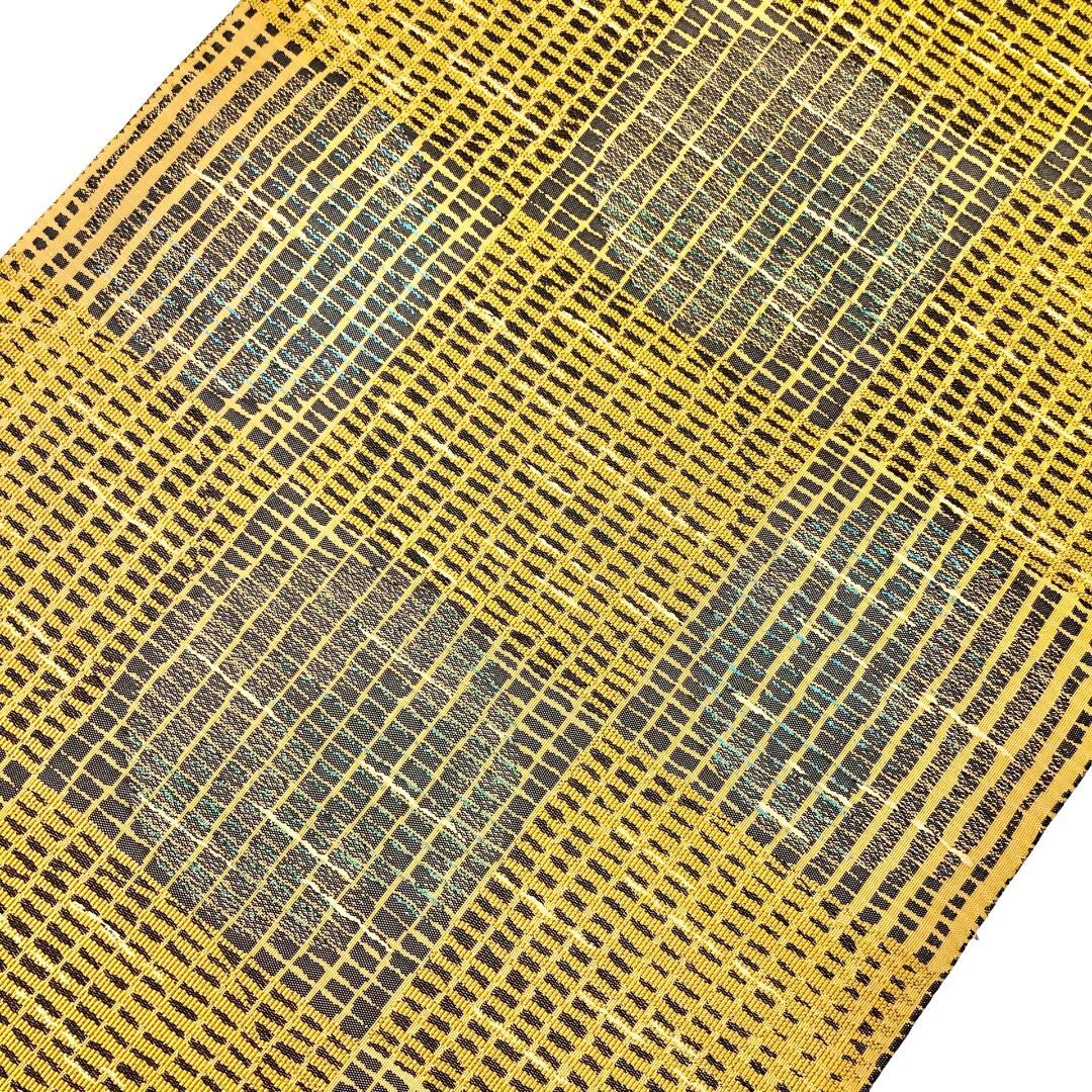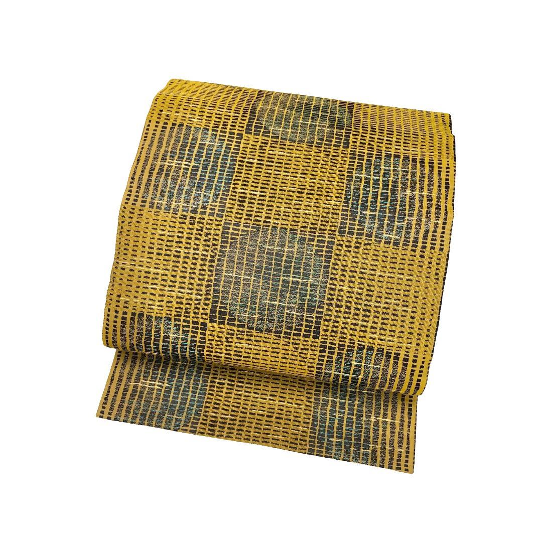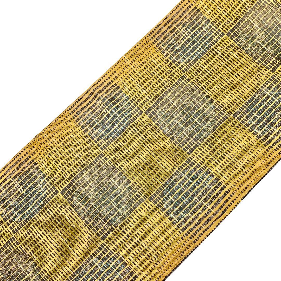 袋帯 四角に丸 黄土色 金糸 ガード加工 O-5728 着物 きもの kimono 和服 和装 中古 リサイクル着物 【送料無料】