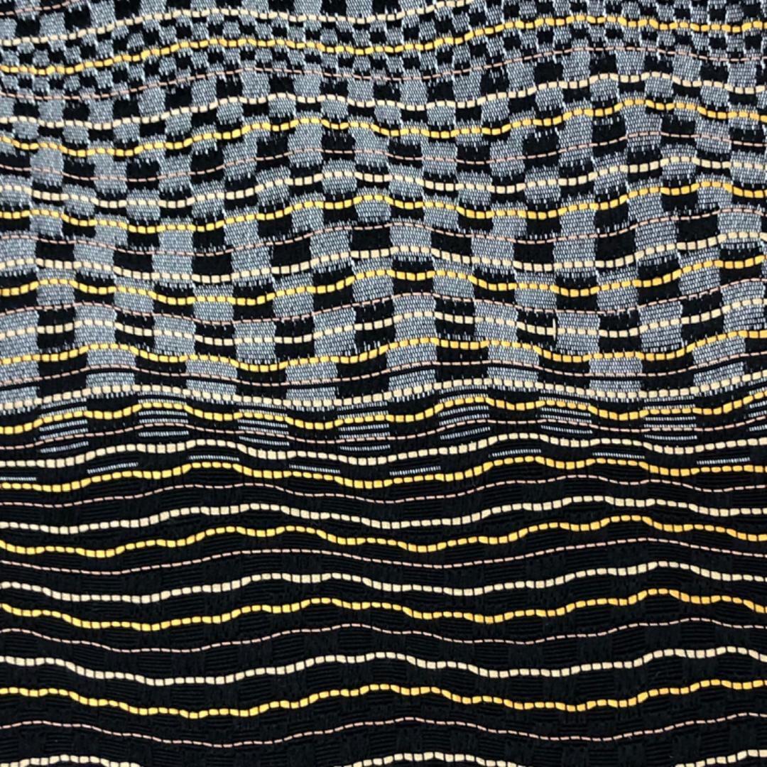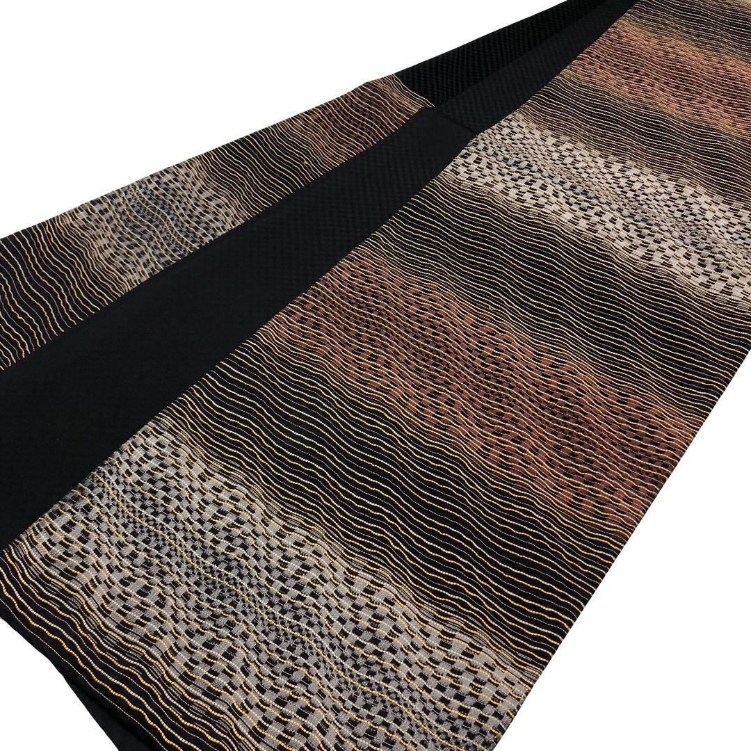 黒色ベースのお色味に横段の色分け、曲線織模様がデザインされた雰囲気の良い素敵なお品でございます。