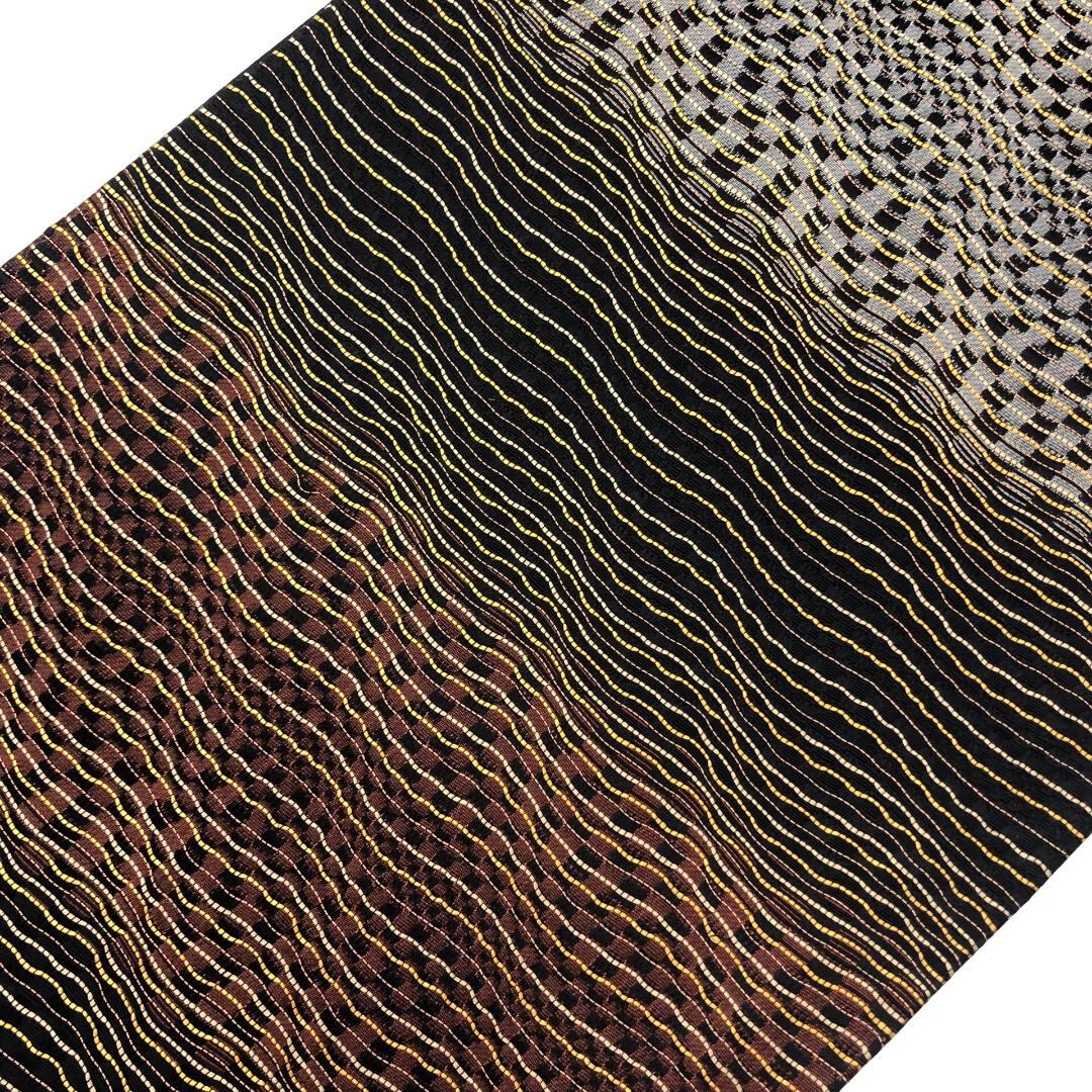 袋帯 横段曲線織模様 黒色 O-5743 着物 きもの kimono 和服 和装 中古 リサイクル着物 【送料無料】
