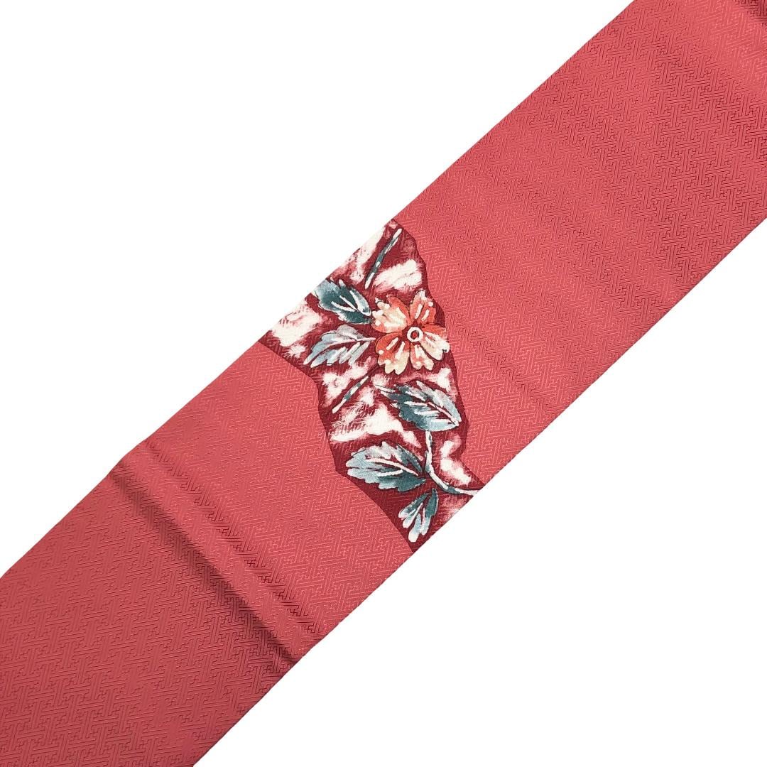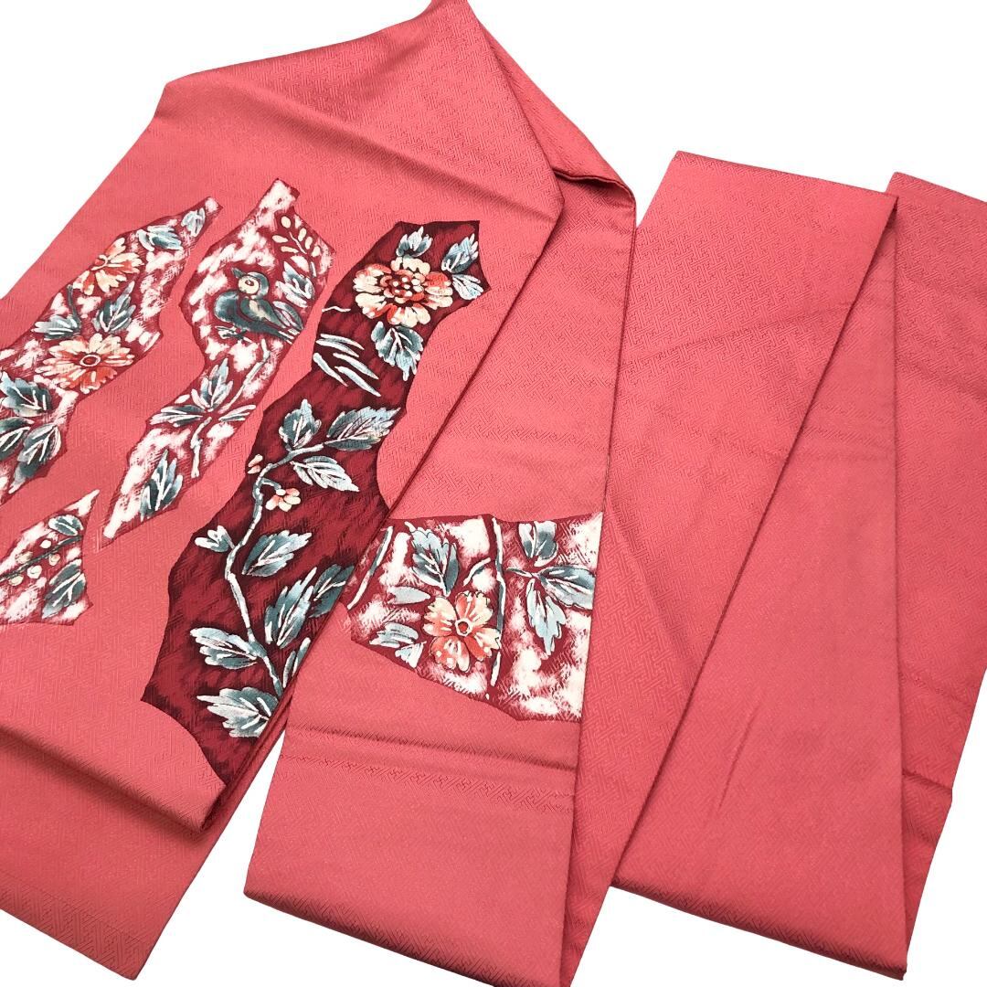 名古屋帯 鳥 花模様 紗綾形地模様 梅重色 O-5751 着物 きもの kimono 和服 和装 中古 リサイクル着物 【送料無料】