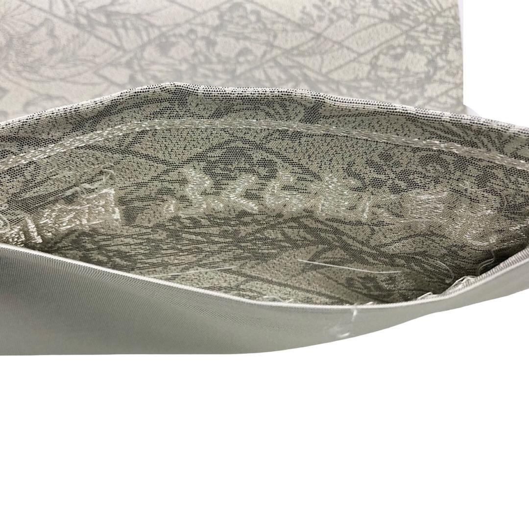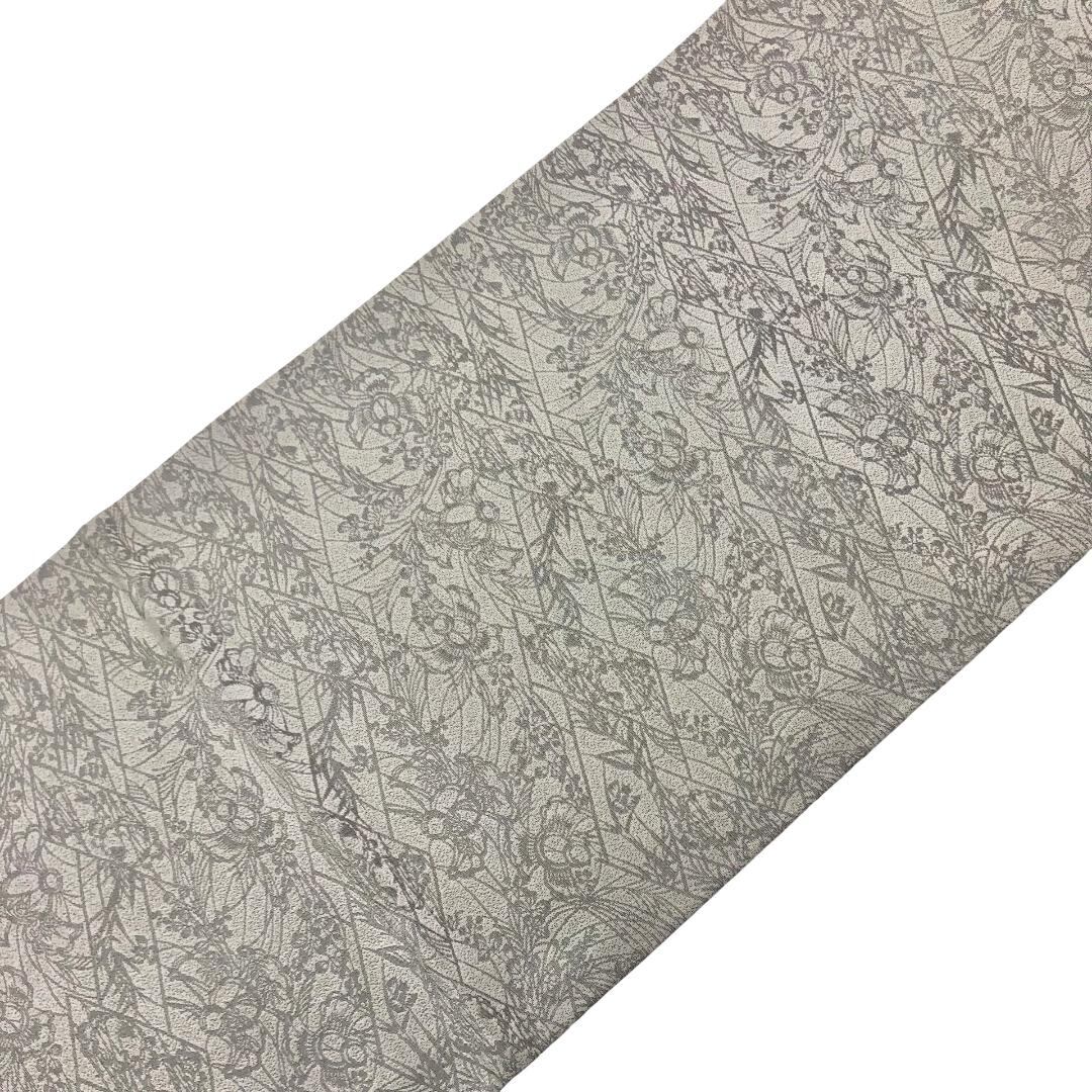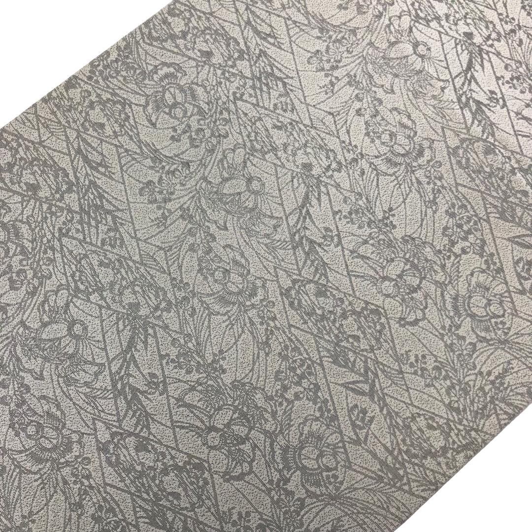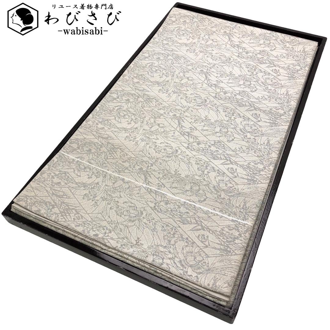 袋帯 彫刻絵図 ふくら雀に草花文 絹鼠色 O-5754 着物 きもの kimono 和服 和装 中古 リサイクル着物 【送料無料】