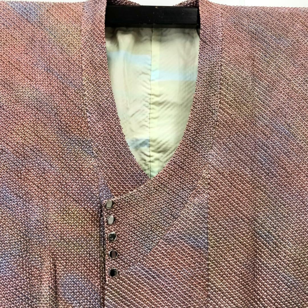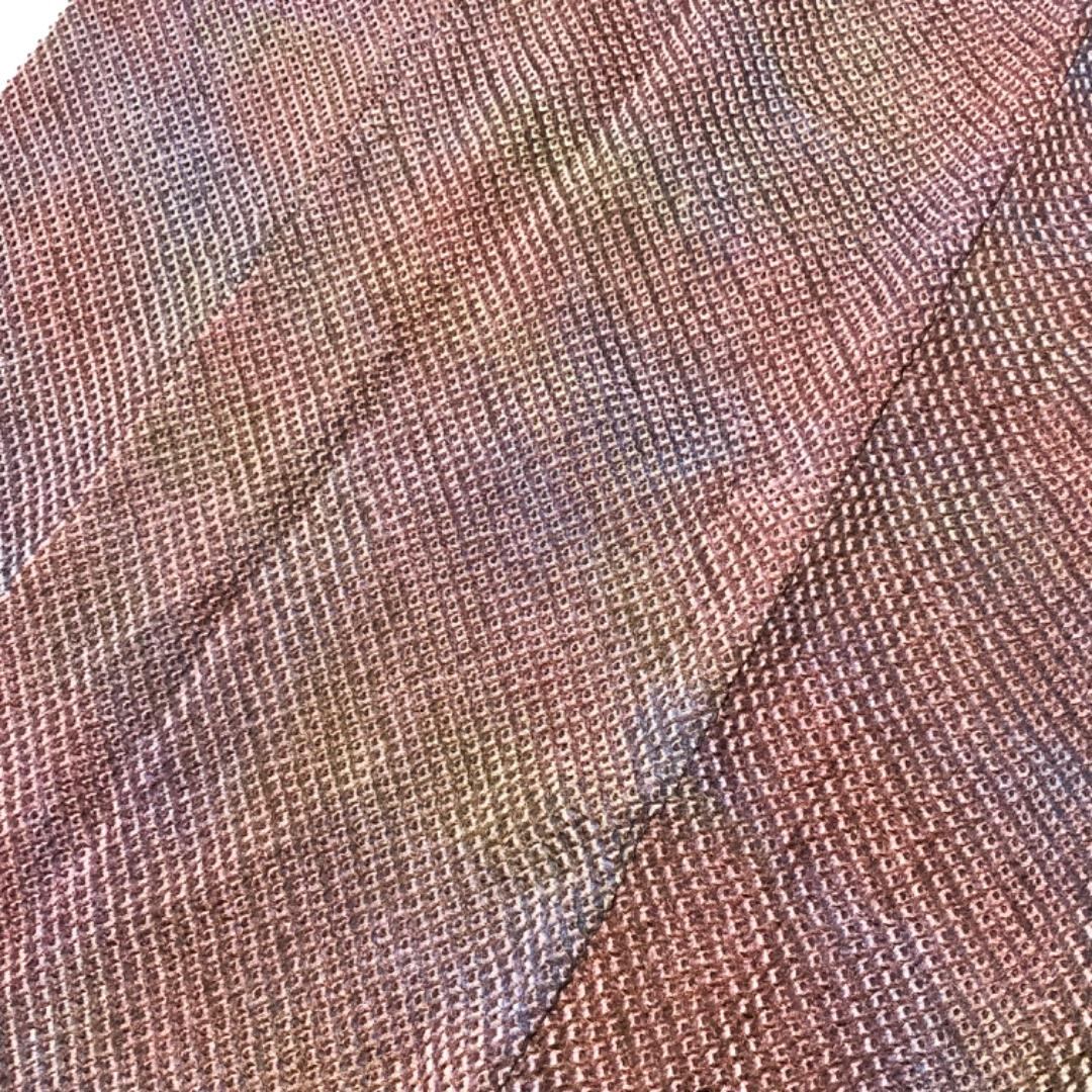 柴色ベースのお色味に総絞りがデザインされた素敵なお品でございます。