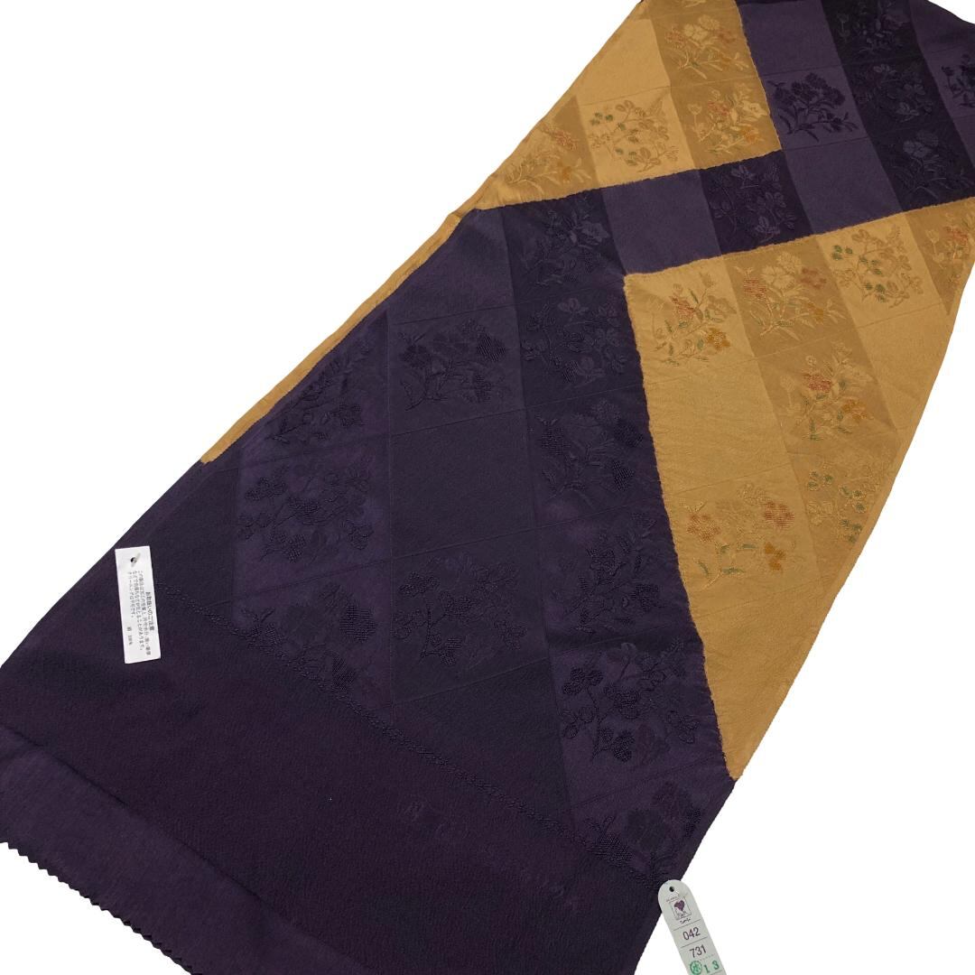 和装小物 帯揚げ 正絹 綸子 染分け 花模様 紫黒色 C-6824 着物 きもの kimono 和服 和装 中古 リサイクル着物 【送料無料】