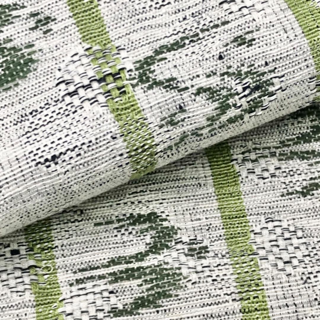 半幅帯 縦縞に琉球柄 薄鼠色 リバーシブル D-2117 着物 きもの kimono 和服 和装 中古 リサイクル着物 【送料無料】