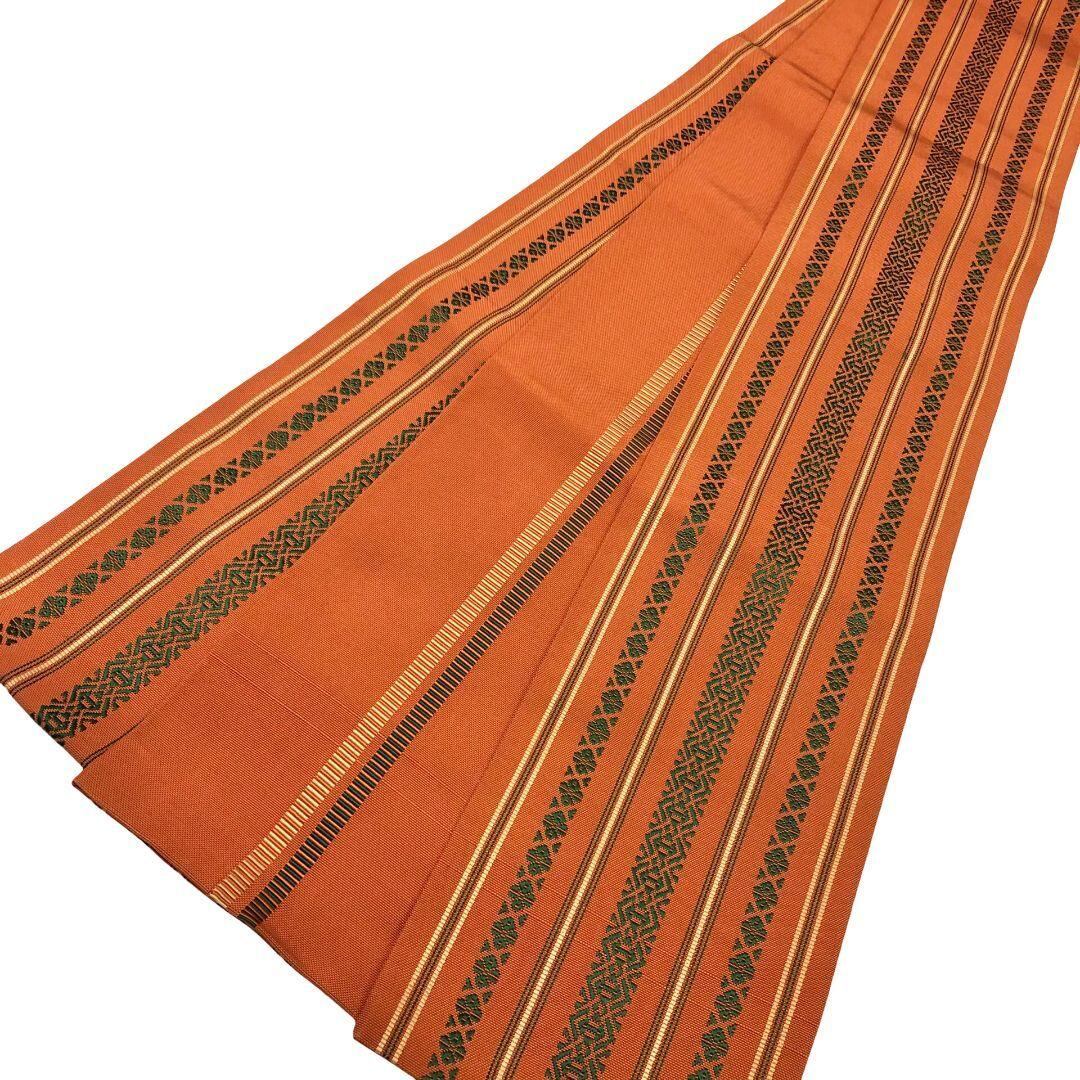半幅帯 本場筑前博多織 献上柄 茶橙色 D-2115 着物 きもの kimono 和服 和装 中古 リサイクル着物 【送料無料】