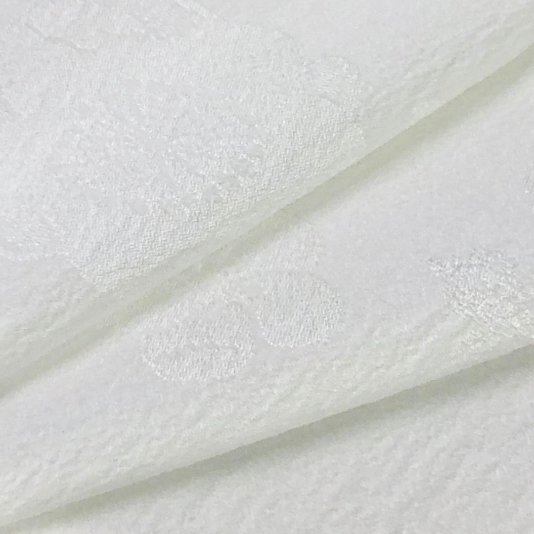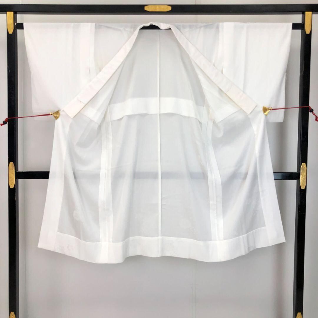 乳白色のお色味に花模様の柄裄がデザインされた素敵なお品でございます。