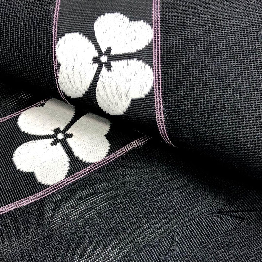 半幅帯 夏帯 紗 縦柄花模様 黒色 D-2126 着物 きもの kimono 和服 和装 中古 リサイクル着物 【送料無料】