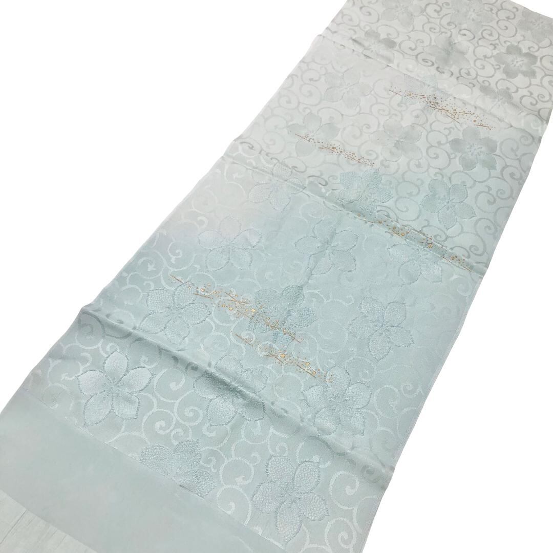 和装小物 帯揚げ 正絹 綸子 花唐草模様 金彩 淡水色 C-6831 着物 きもの kimono 和服 和装 中古 リサイクル着物 【送料無料】