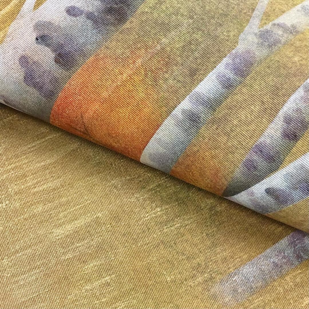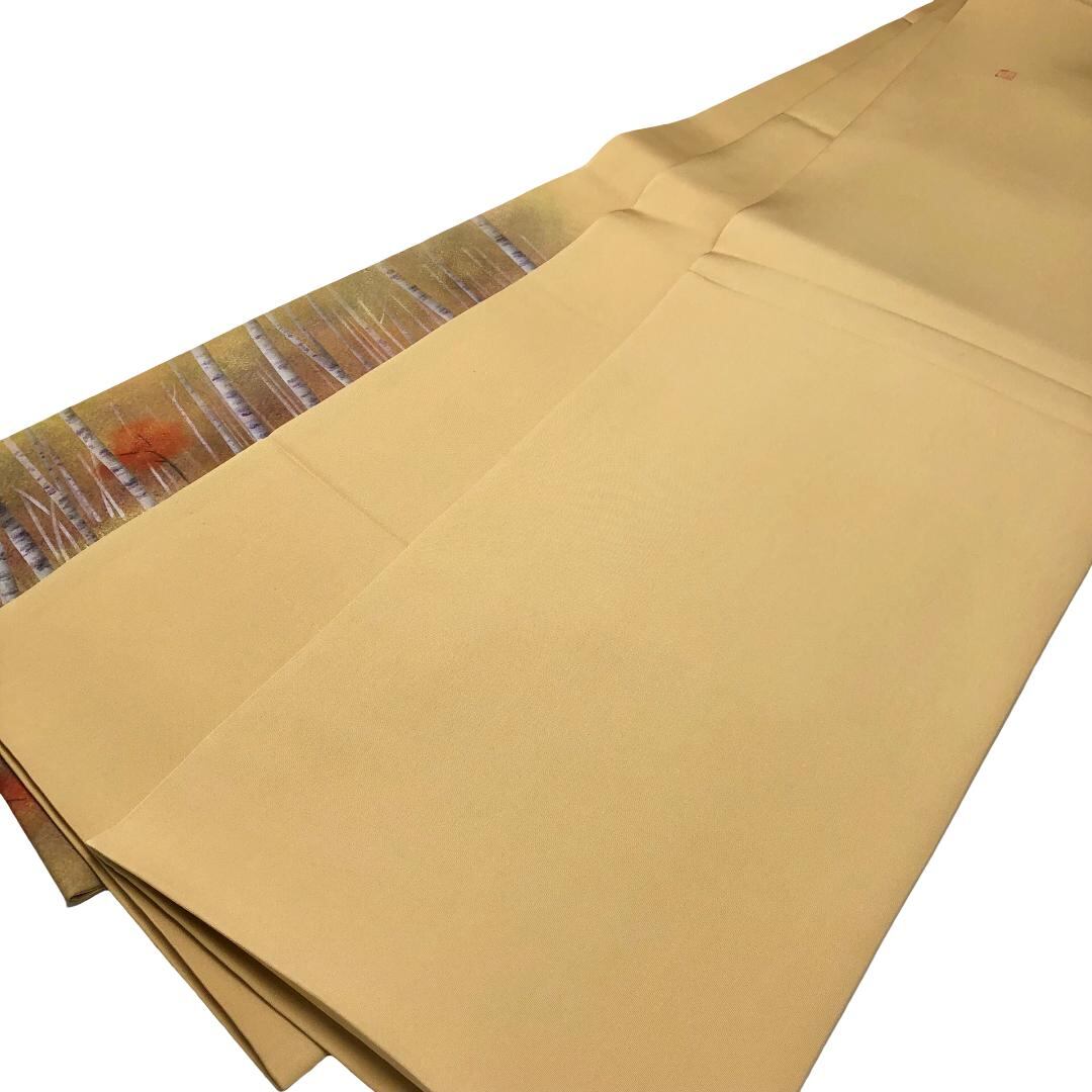 黄唐紙色のお色味に白樺の木々模様がデザインされた素敵な柄裄のお品でございます。