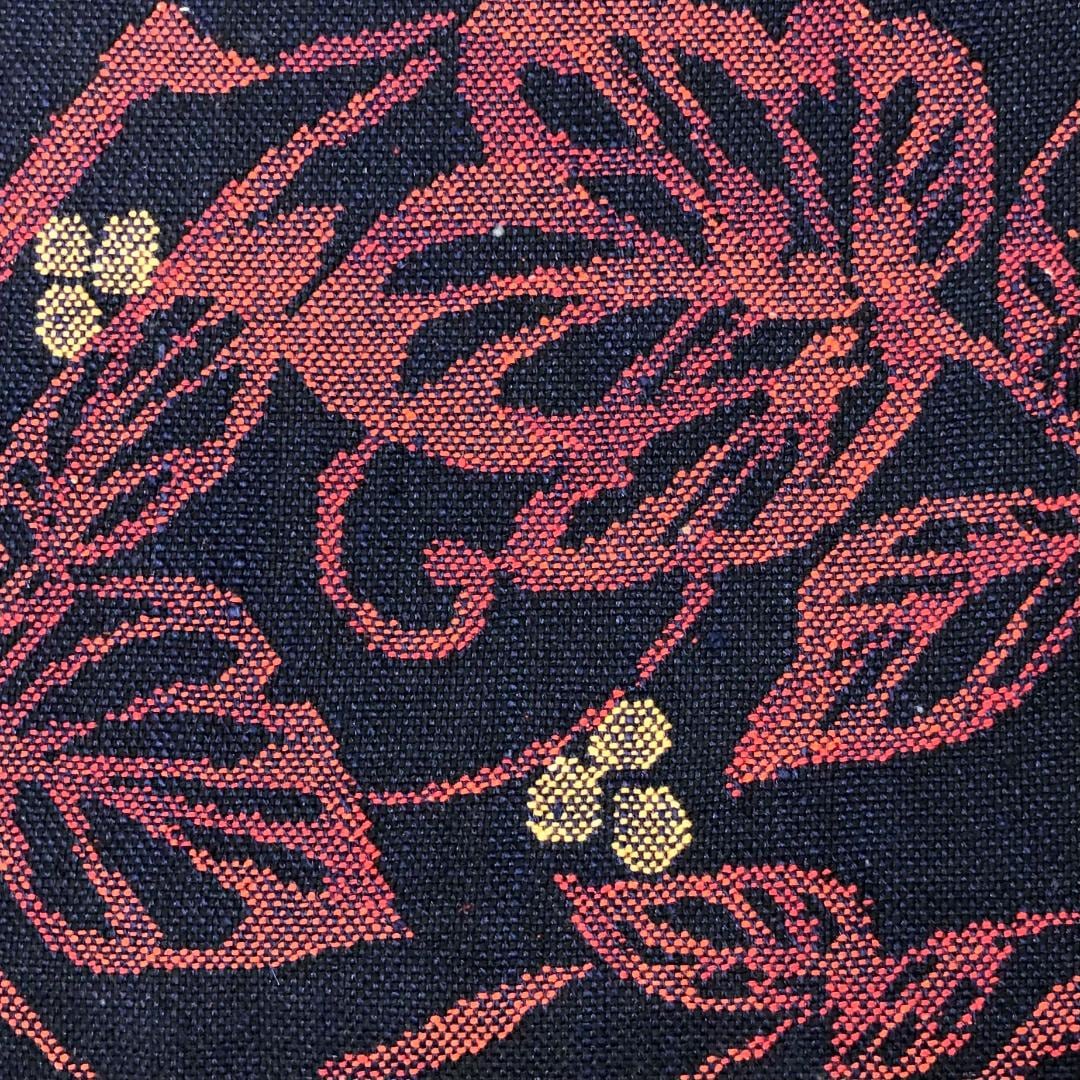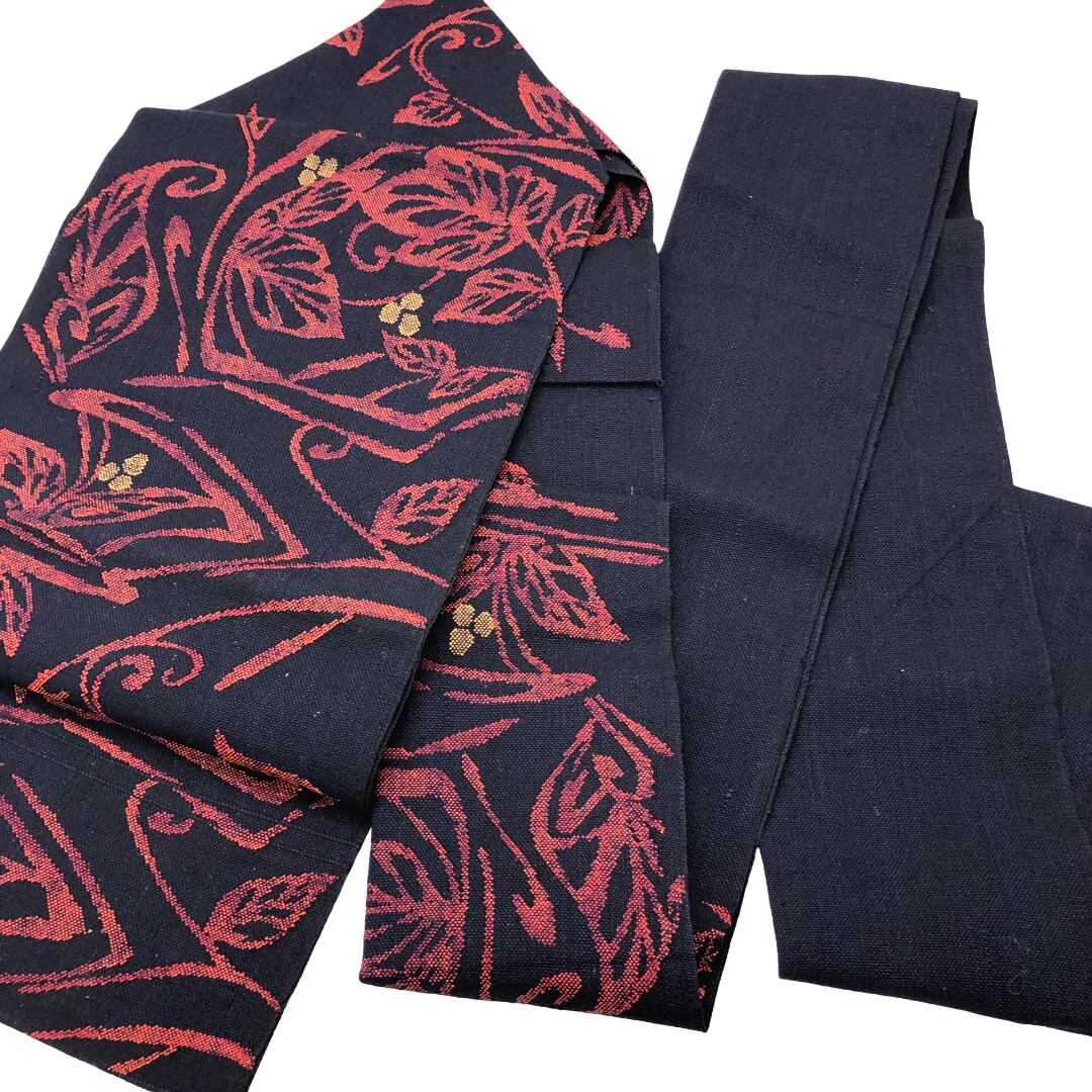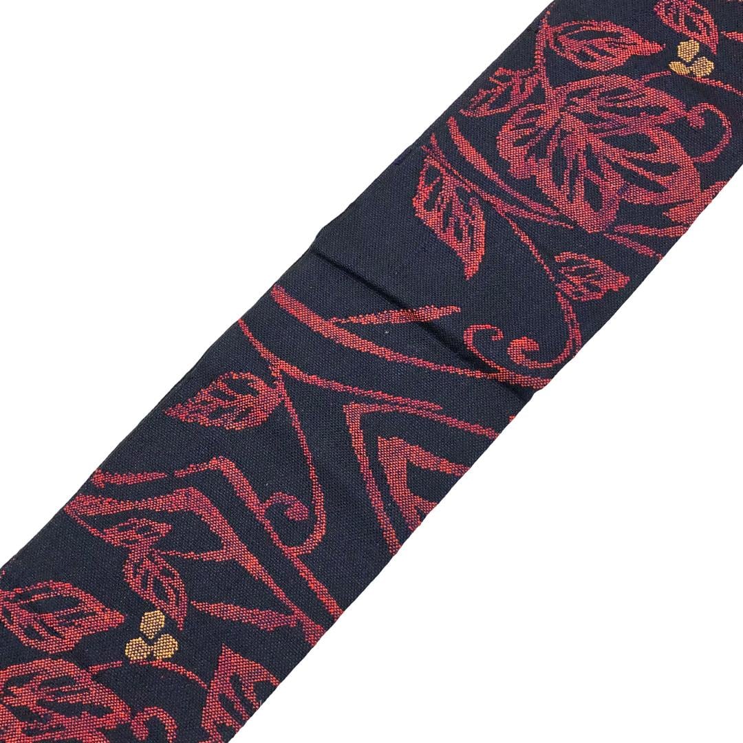 名古屋帯 紬 花唐草模様 紺色 O-5934 着物 きもの kimono 和服 和装 中古 リサイクル着物 【送料無料】