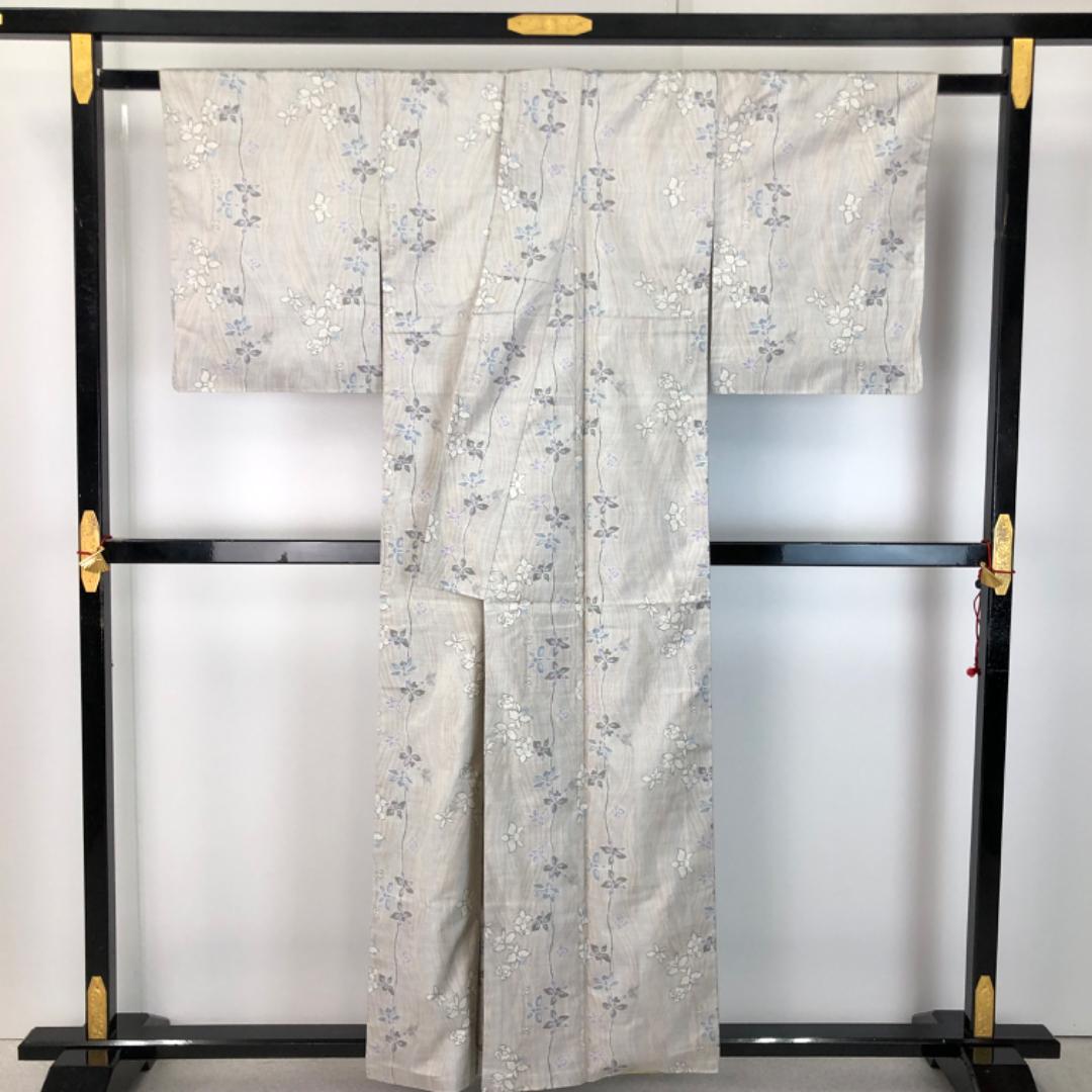 本場大島紬 白大島 カタス7マルキ 縦柄花模様 しつけ糸 K-5546 着物 きもの kimono 和服 和装 中古 リサイクル着物 【送料無料】