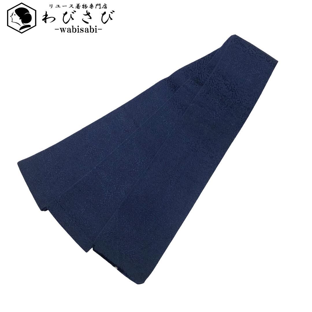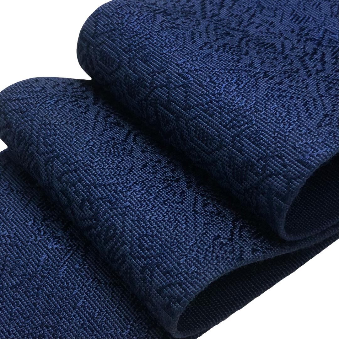 紺鉄色のお色味に抽象織模様がデザインされた素敵な柄裄のお品でございます。