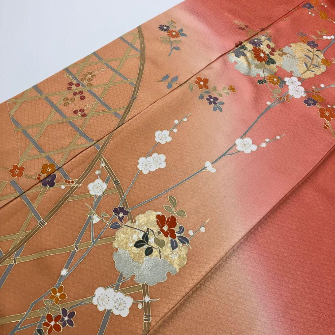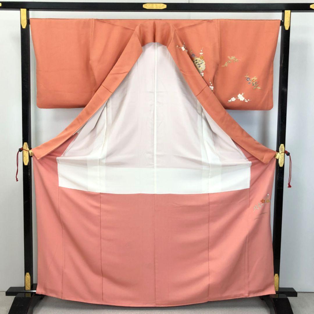 訪問着 雪輪 四季の花模様 金彩 珊瑚色 トールサイズ K-5692 着物 きもの kimono 和服 和装 中古 リサイクル着物 【送料無料】