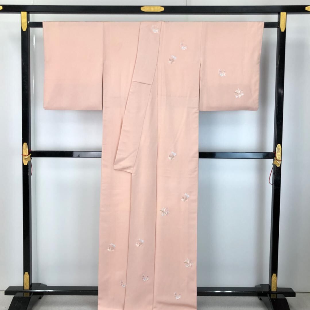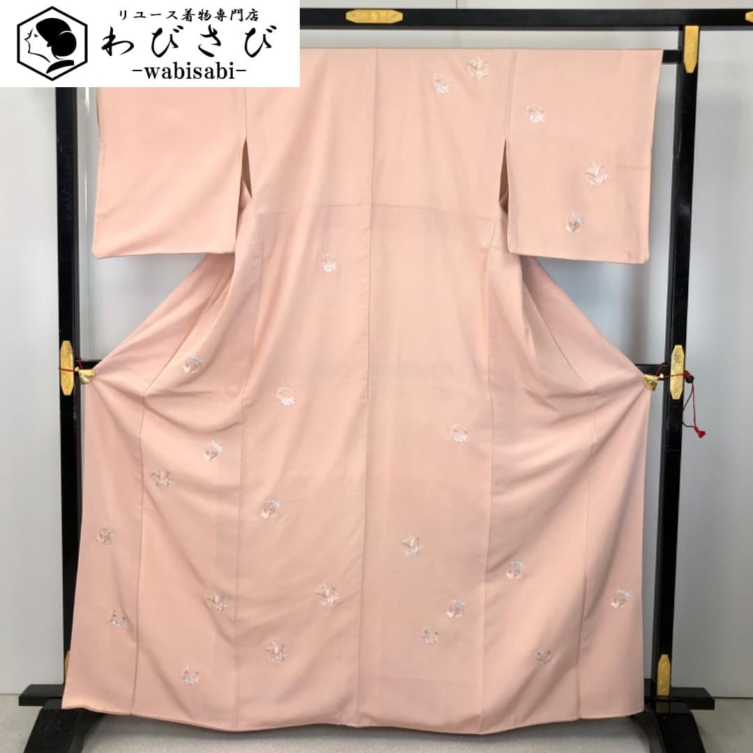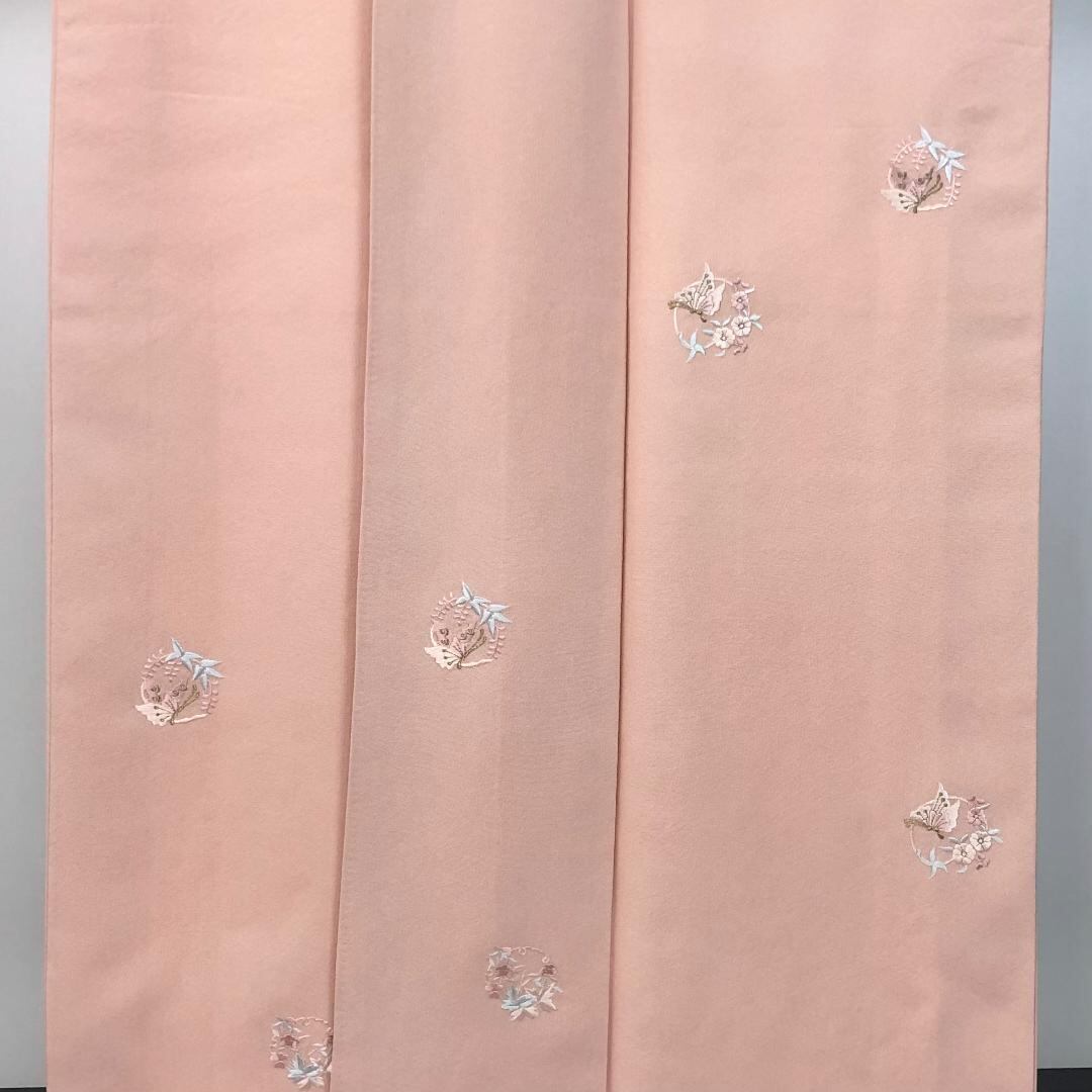 付下げ 蝶々の花模様 刺繍 今様色 丹後縮緬 K-5687 着物 きもの kimono 和服 和装 中古 リサイクル着物 【送料無料】