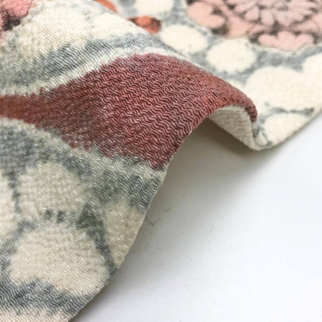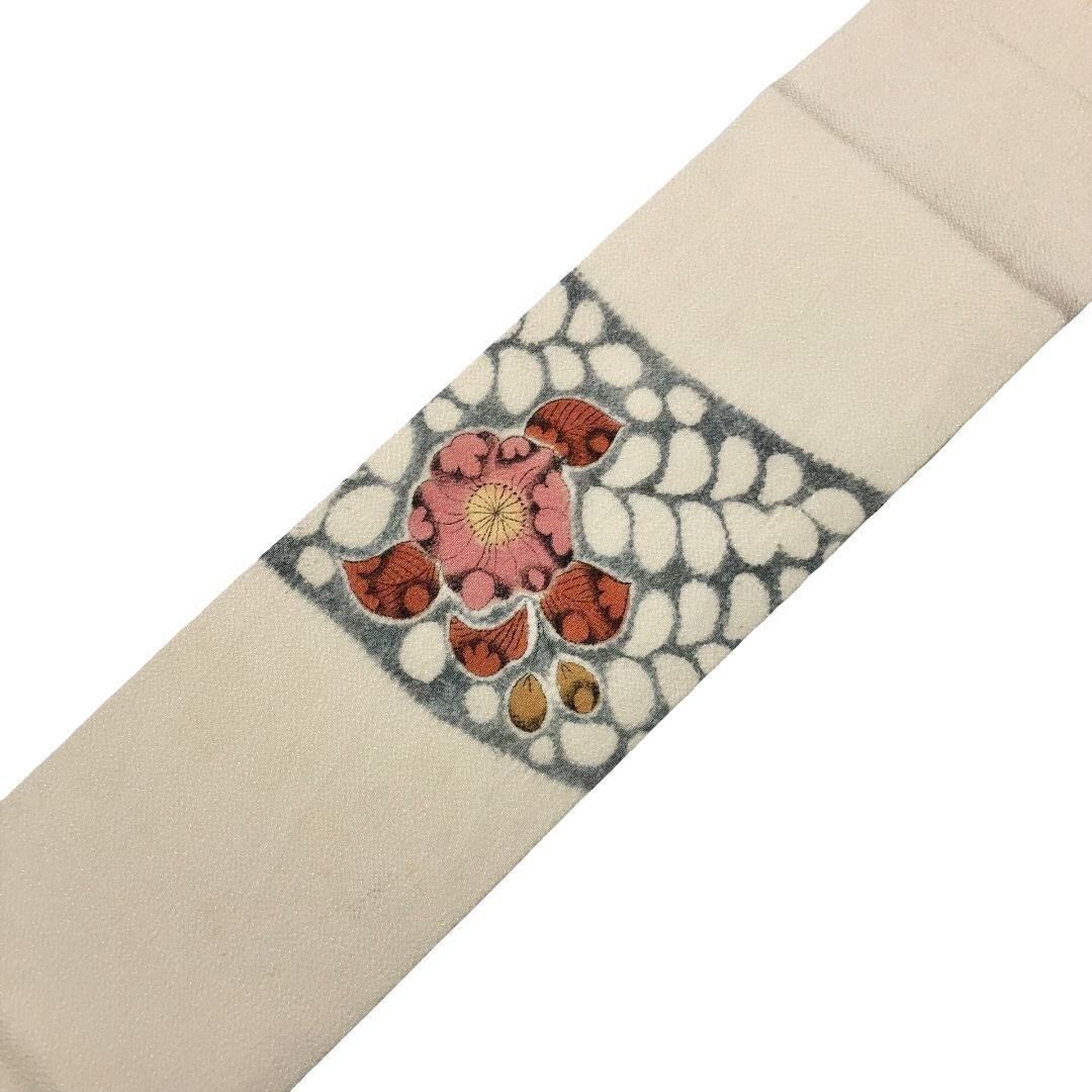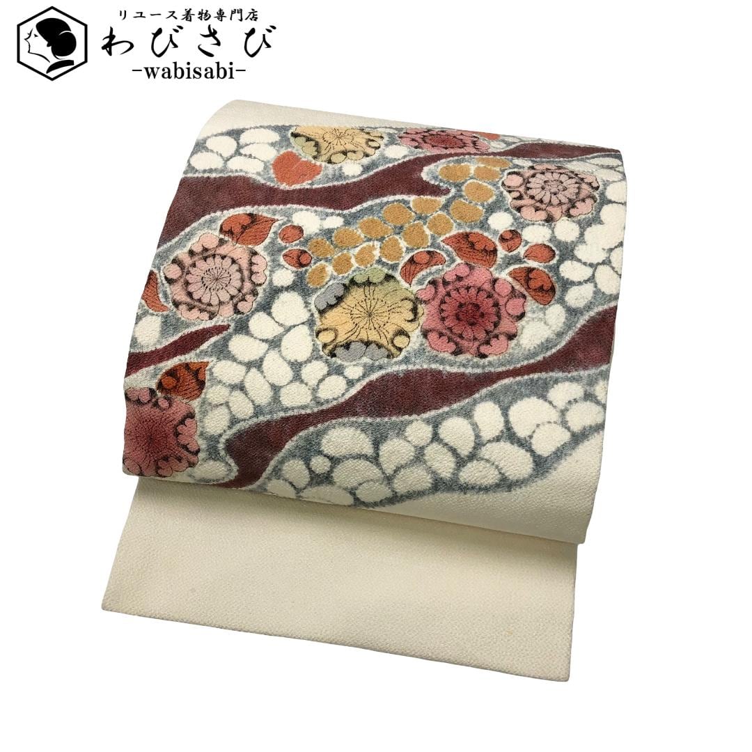 名古屋帯 辻が花絞り 縮緬 乳白色 O-5931 着物 きもの kimono 和服 和装 中古 リサイクル着物 【送料無料】