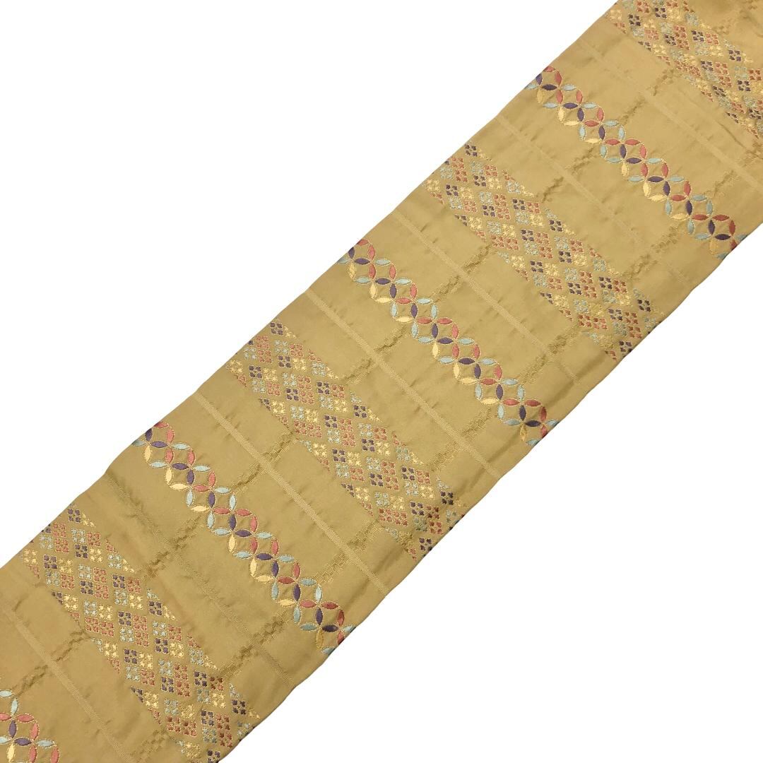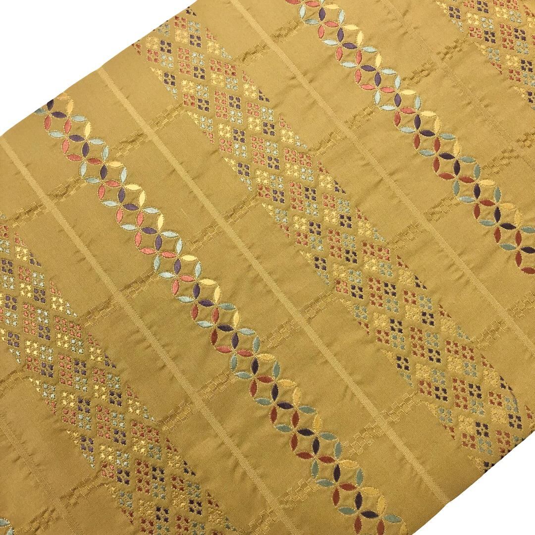 名古屋帯 花七宝 四つ菱 麦藁色 O-5936 着物 きもの kimono 和服 和装 中古 リサイクル着物 【送料無料】