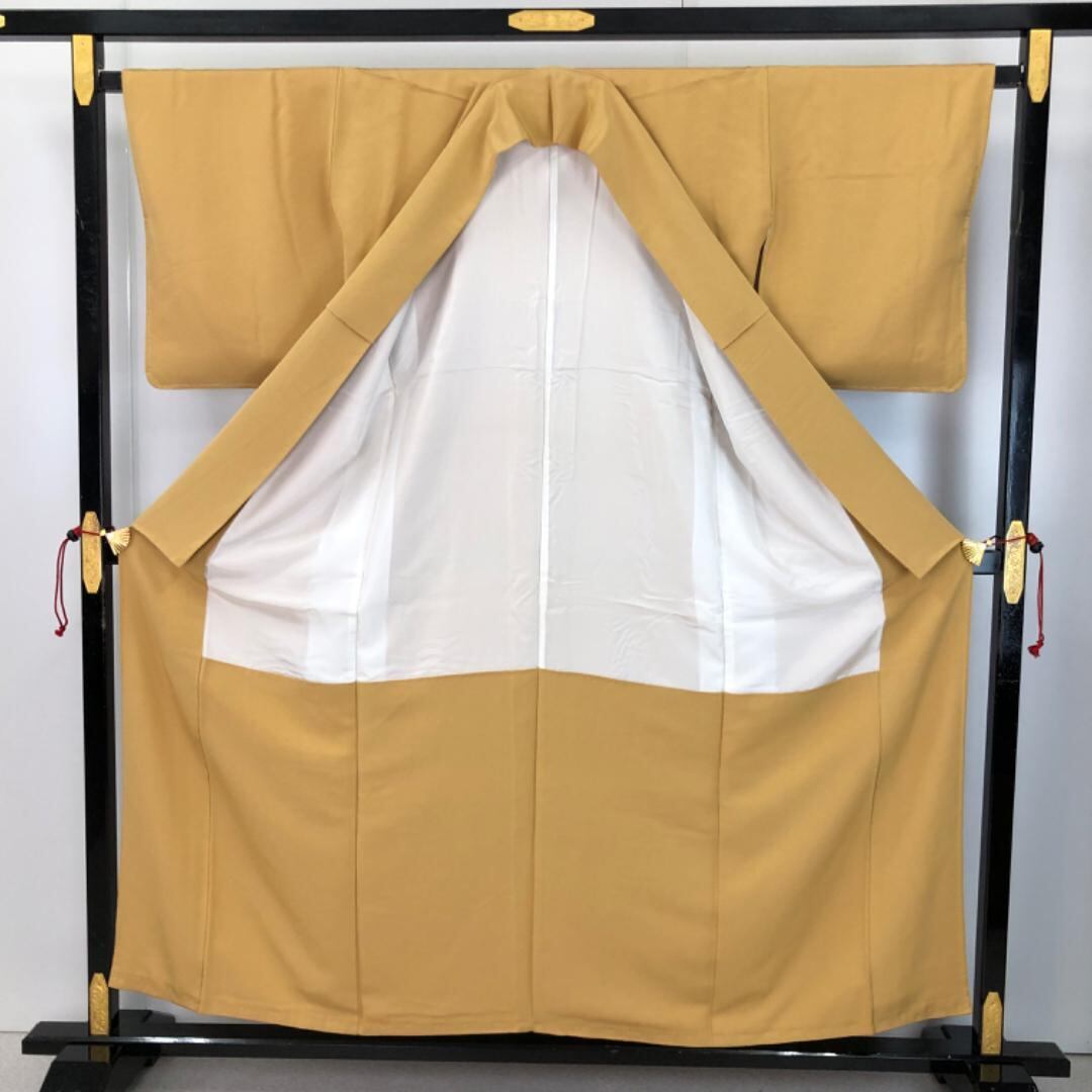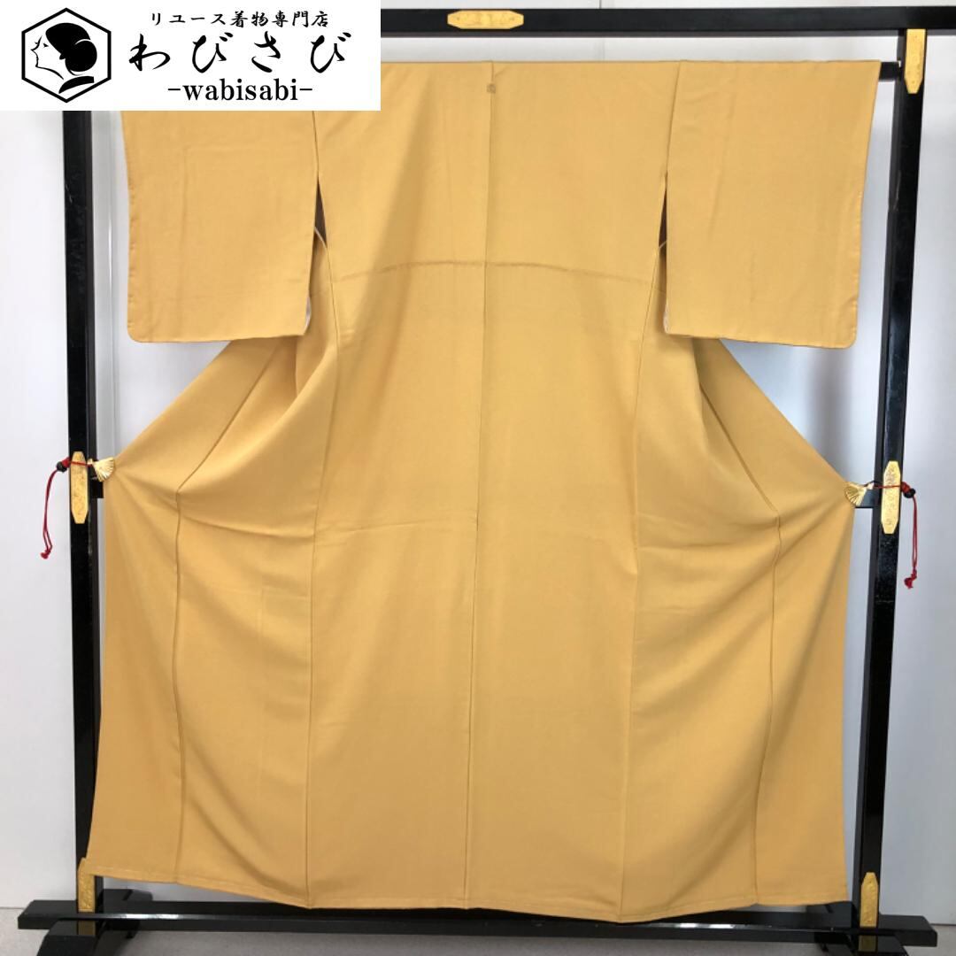 麦藁色の雰囲気の良い黄色味のお色の縮緬地の素敵なお品でございます。