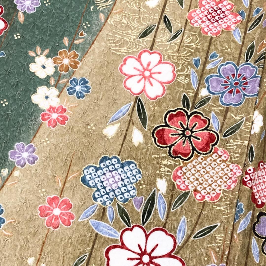 枯色ベースのお色味に美しい縦柄花模様がデザインされた素敵なお品でございます。