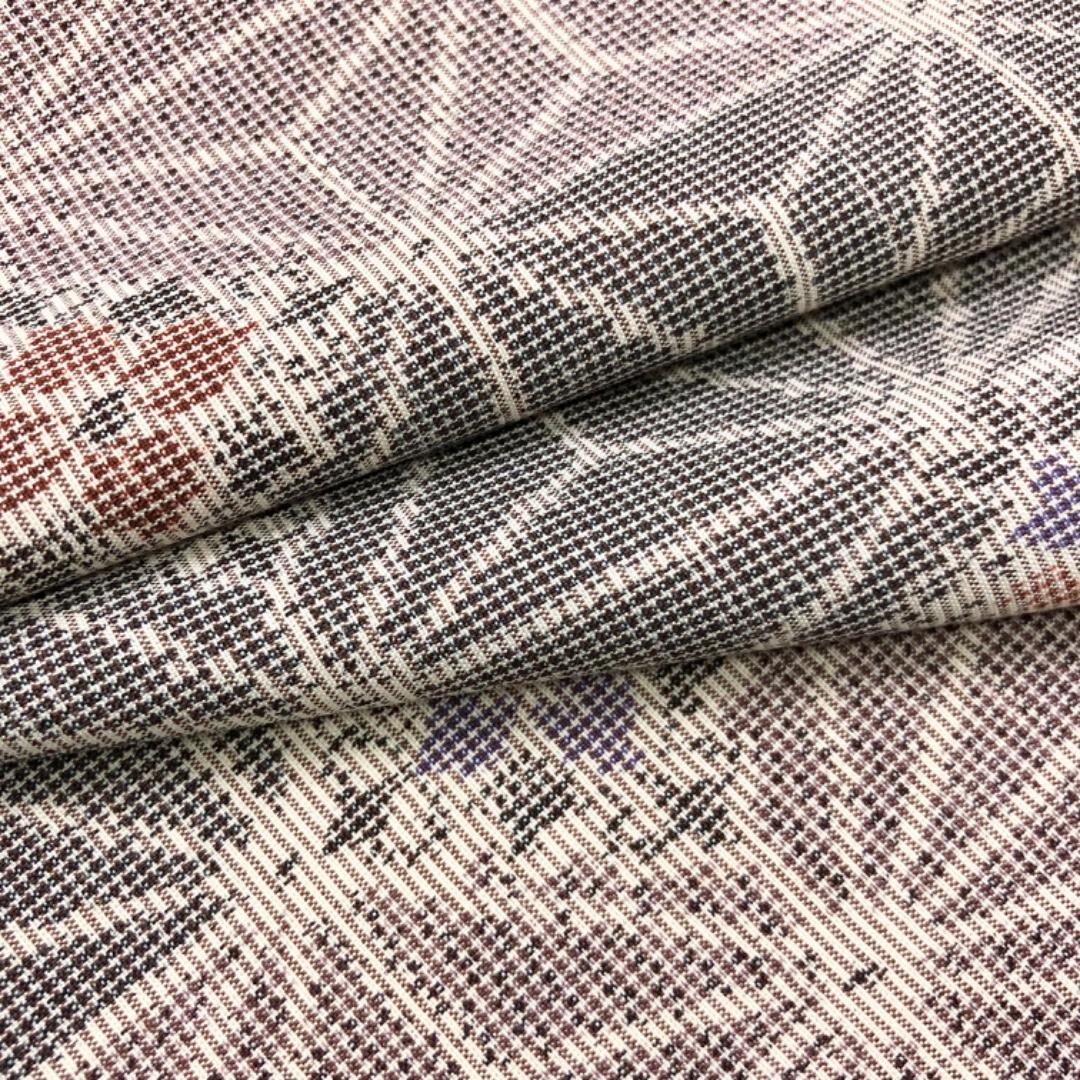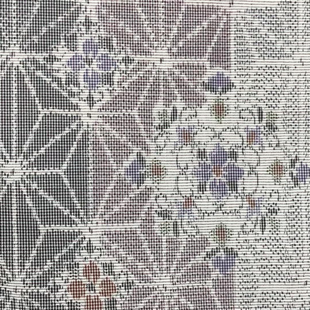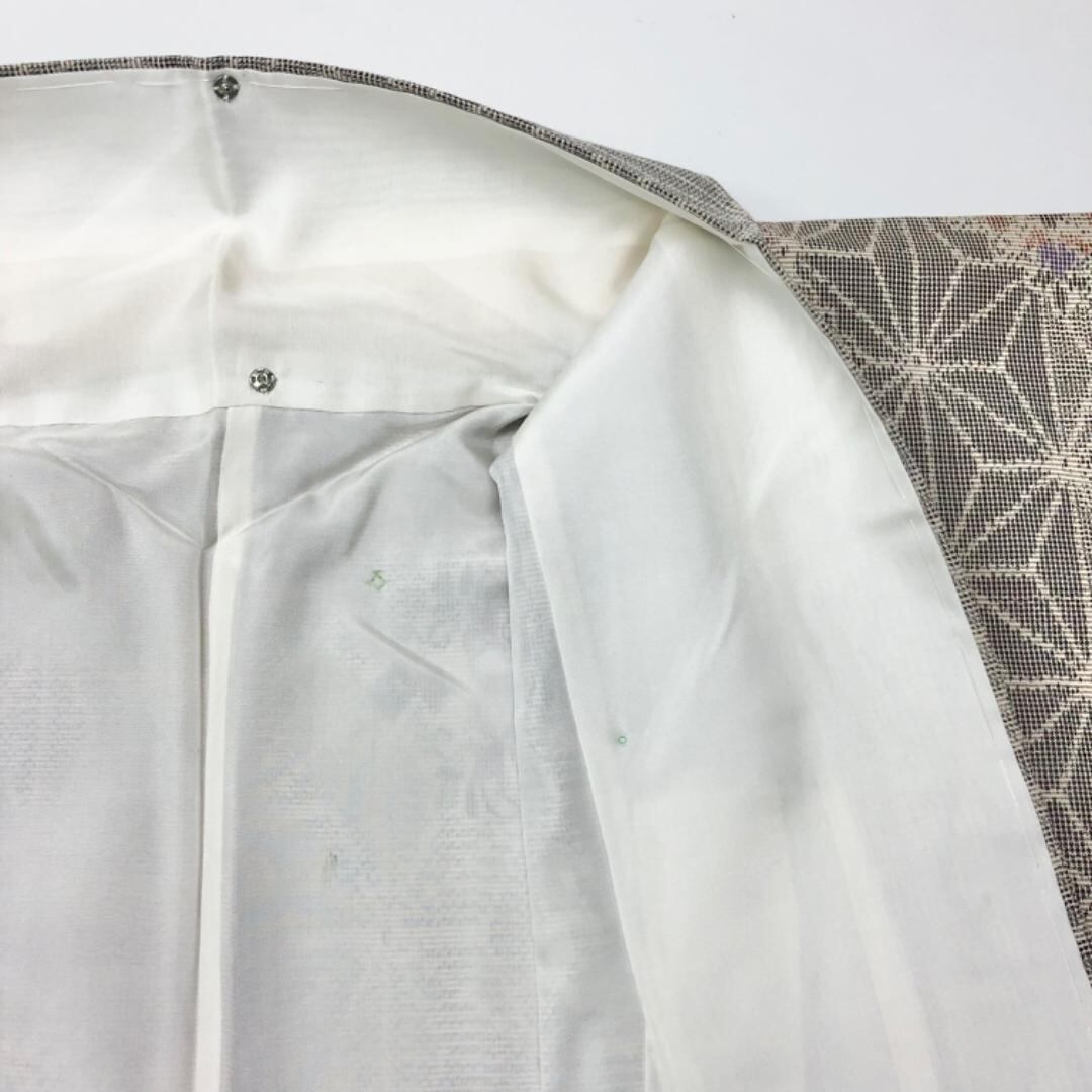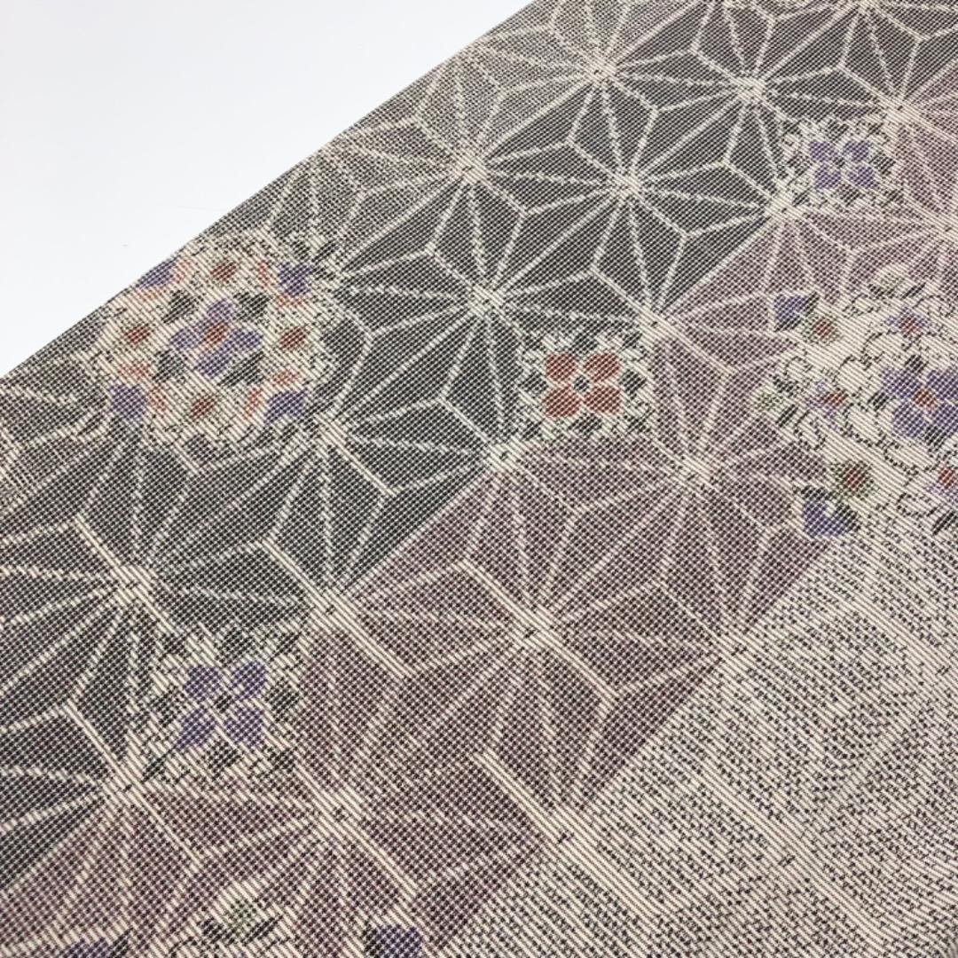 乳白色のお色味に麻の葉に華柄模様がデザインされた雰囲気の良い素敵な柄裄のお品でございます。