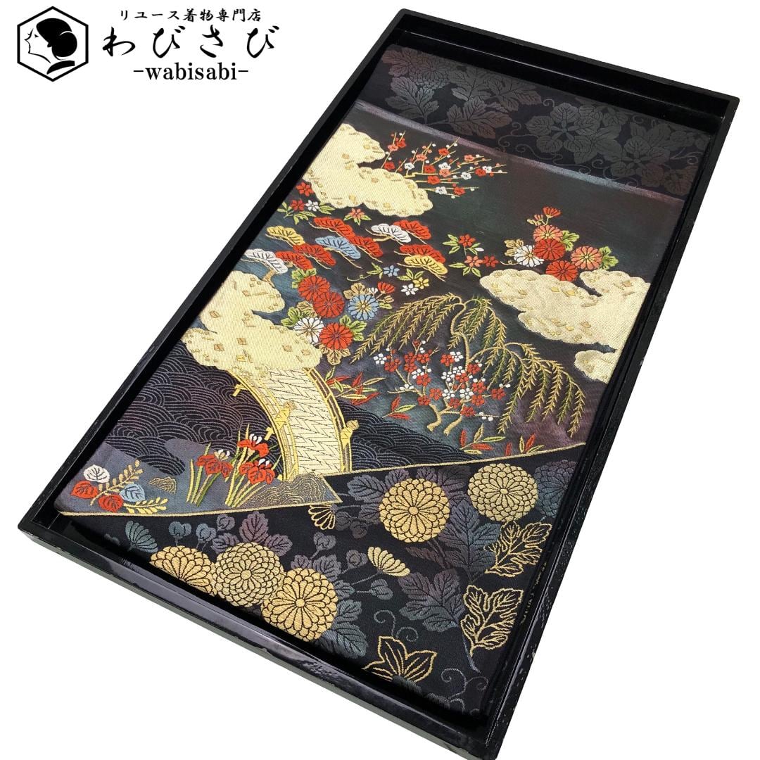 袋帯 美しい風景模様 梅 松 波に橋 金糸 O-5842 着物 きもの kimono 和服 和装 中古 リサイクル着物 【送料無料】