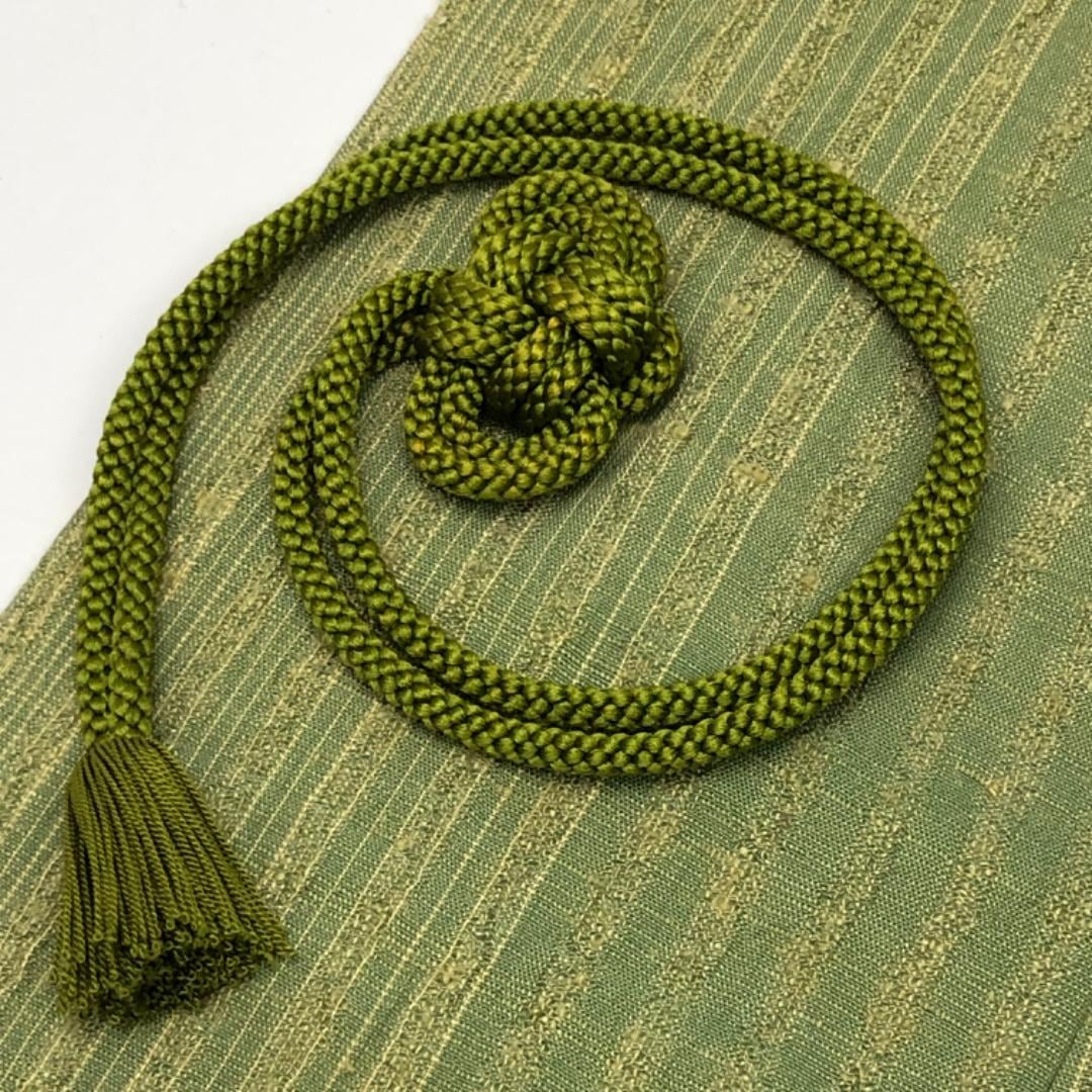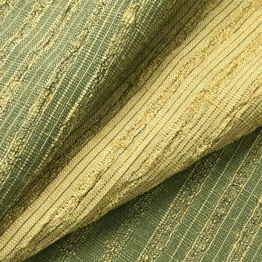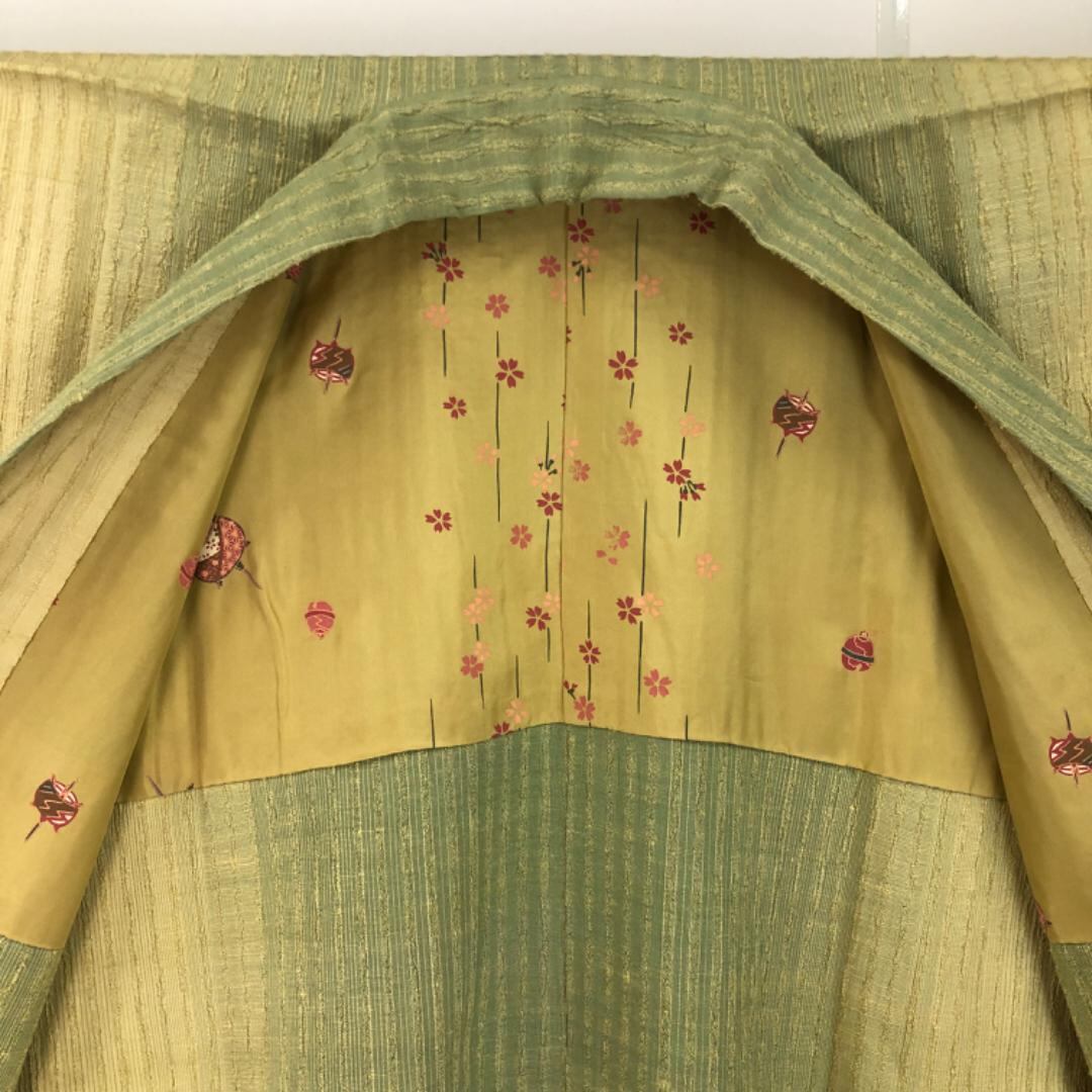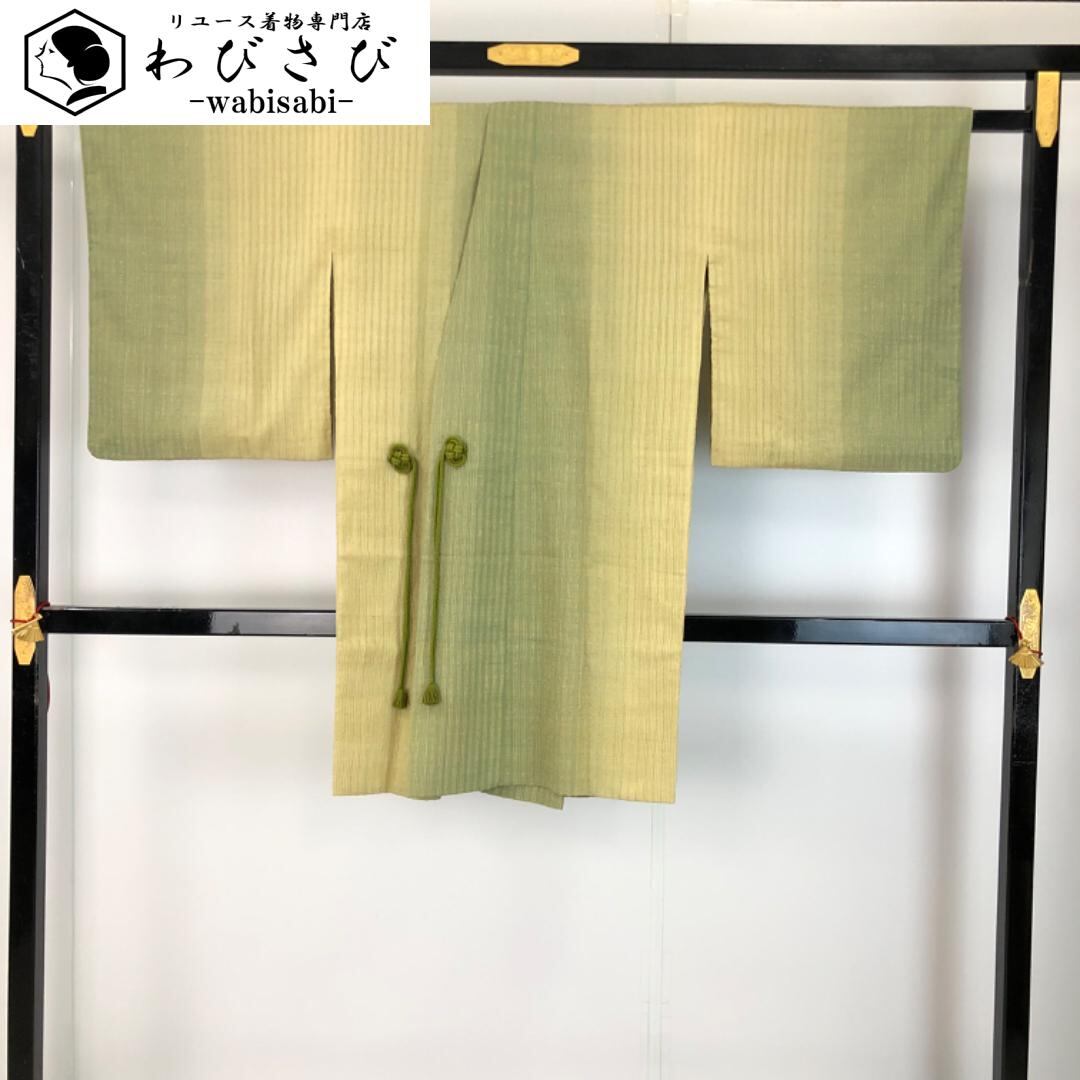 柳茶色ベースのお色味に縦縞グラデーション模様がデザインされた雰囲気の良い素敵なお品でございます。